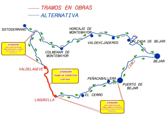 Se desviará el tráfico por Peñacaballera, Puerto de Béjar, Colmenar de Montemayor, Horcajo de Montemayor, Sotoserrano y Valdehijaderos Calzada de Béjar y Béjar