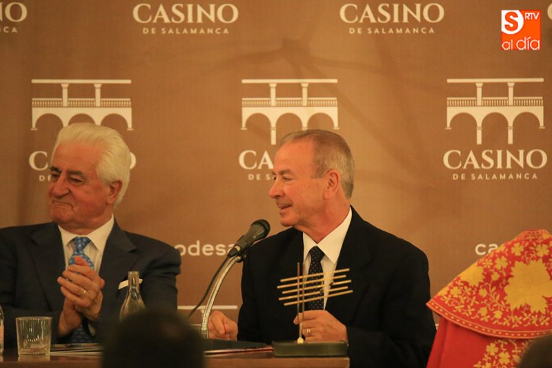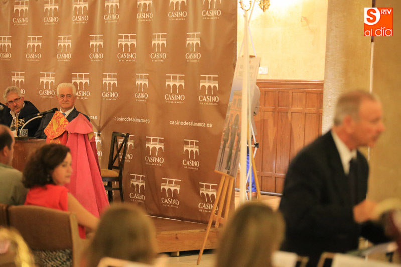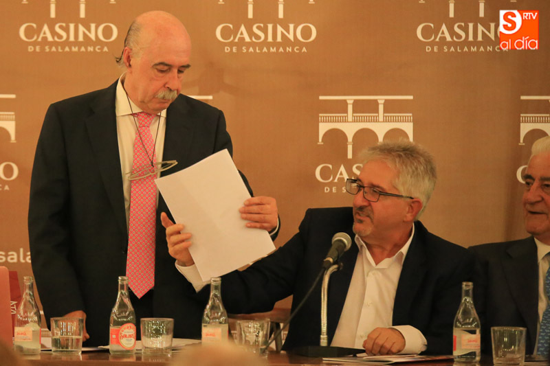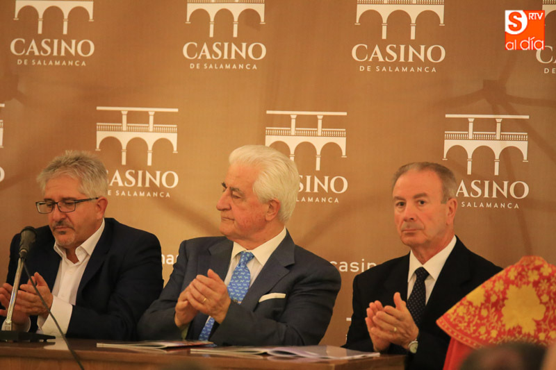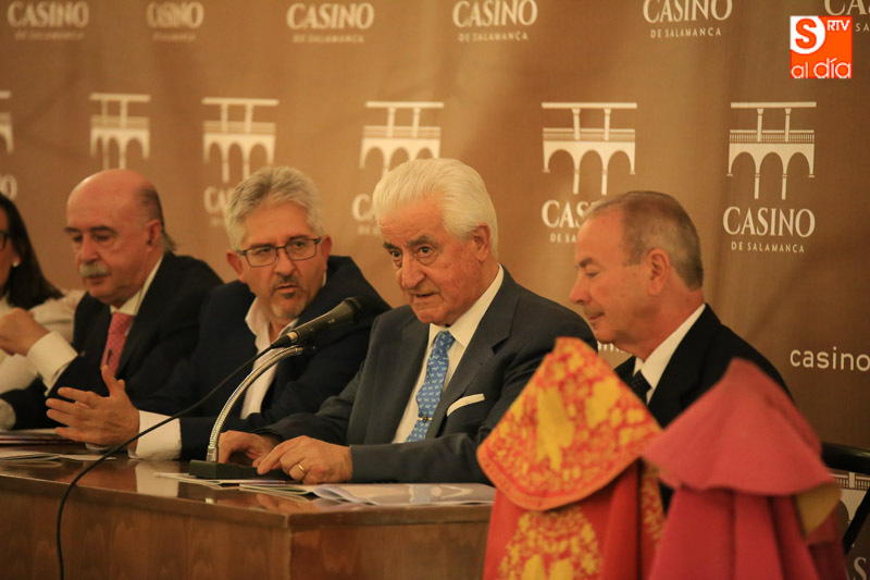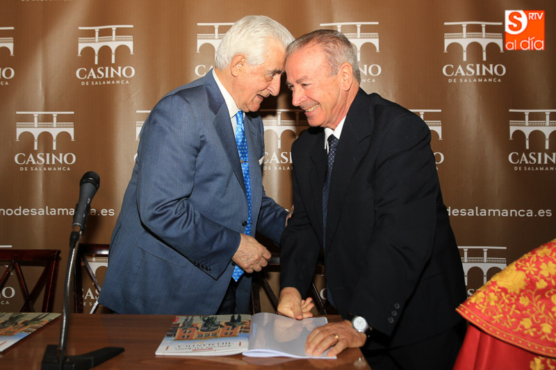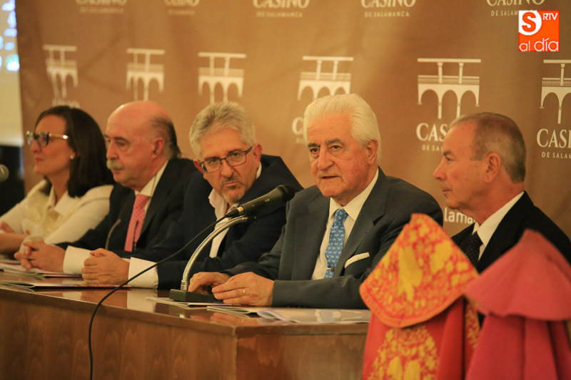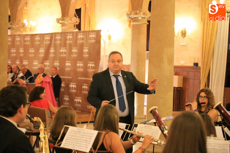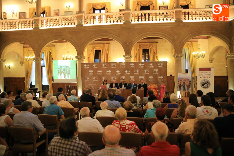 La presentación oficial de la revista 'Rincón Taurino Helmántica' ha reunido esta tarde en el Casino de Salamanca a numerosos aficionados que han querido arropar a la junta directiva de la Federación en la puesta de largo de sus nuevos proyectos. El acto se ha completado con la el estreno del pasodoble que el compositor Manuel Rico Gómez ha compuesto para el colectivo y que ha sido interpretado por la Banda Musical de Alba de Tormes, dirigida por el maestro Mario Vercher Grau.