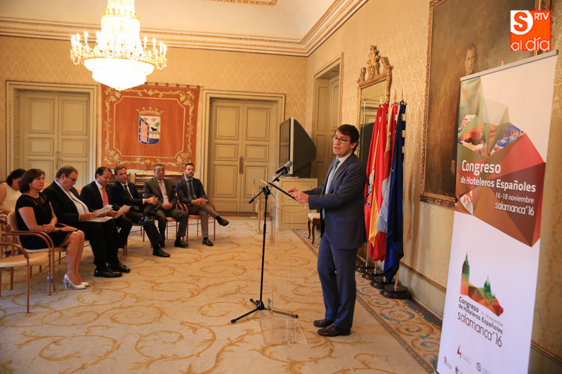 La consejera de Cultura y Turismo de la Junta de Castilla y León, María Josefa García Cirac, el alcalde de Salamanca, Alfonso Fernández Mañueco, el presidente de la Asociación de Empresarios de Hostelería de Salamanca, Alain Saldaña, así como el presidente de CEHAT, Juan Molas, han participado en el Ayuntamiento en la presentación oficial de este congreso que se celebra cada dos años en una ciudad distinta. "Salamanca acoge por primera vez este congreso, el más importante a nivel nacional, y será el epicentro del debate y la reflexión de la industria hotelera con este evento que ratifica a Salamanca como ciudad de encuentro y turismo", ha asegurado Fernández Mañueco, a la vez que ha incidido en el récord de visitantes conseguido en julio y en "la oferta hotelera de gran calidad de la que podemos presumir".
