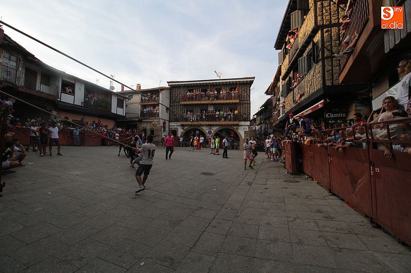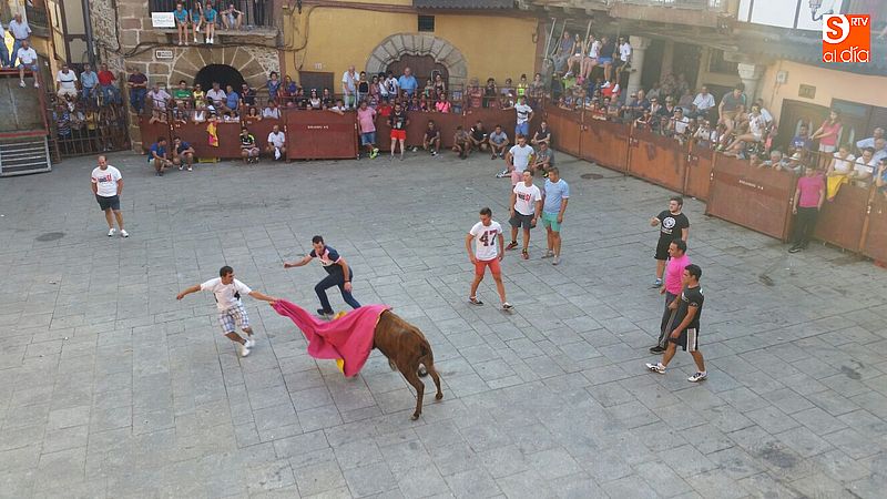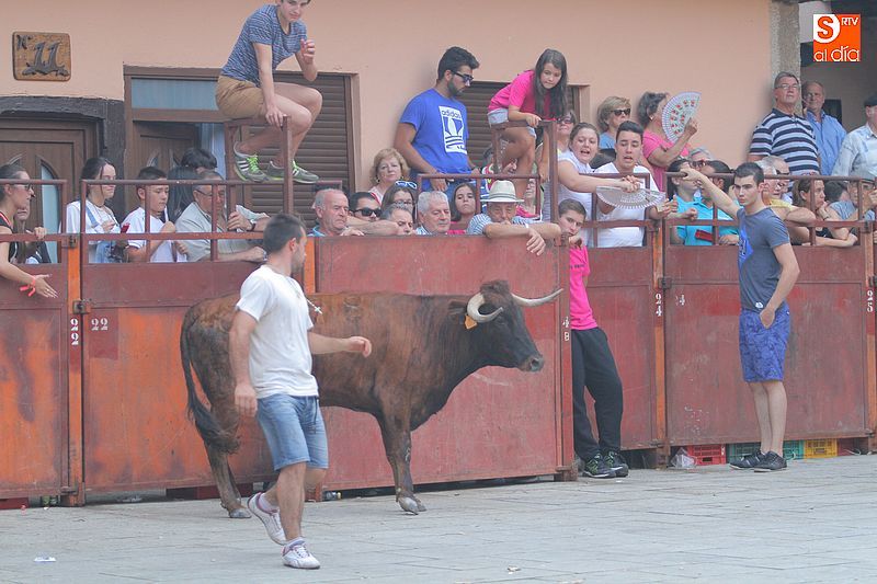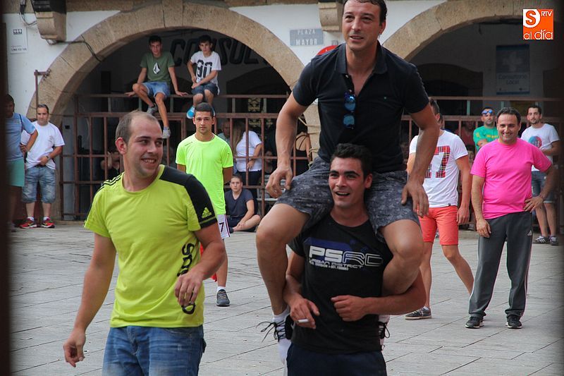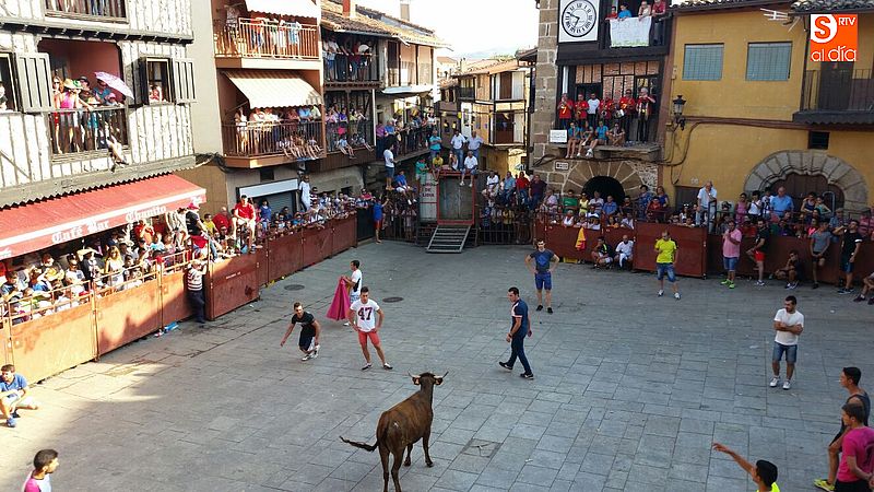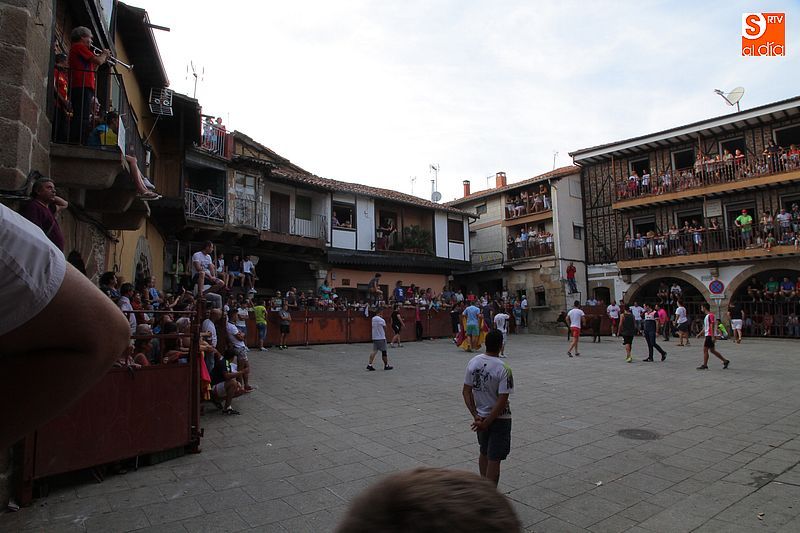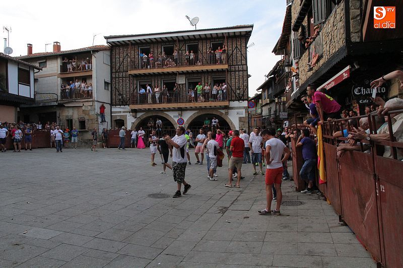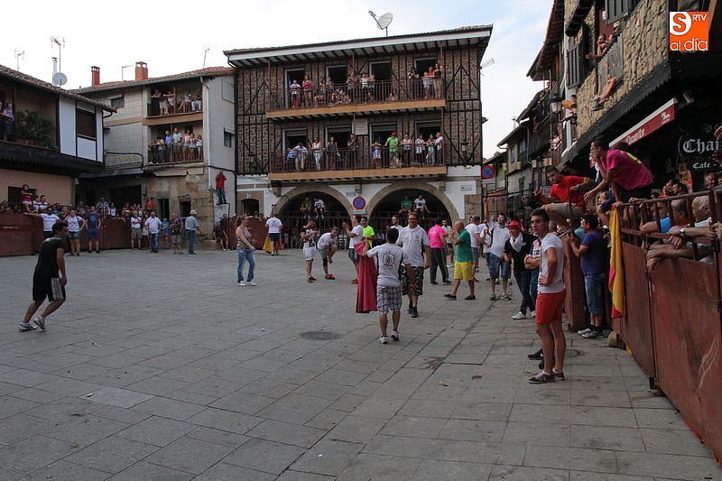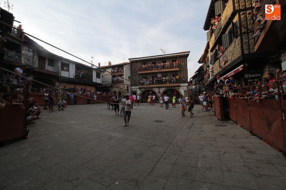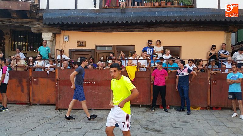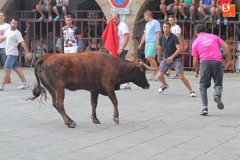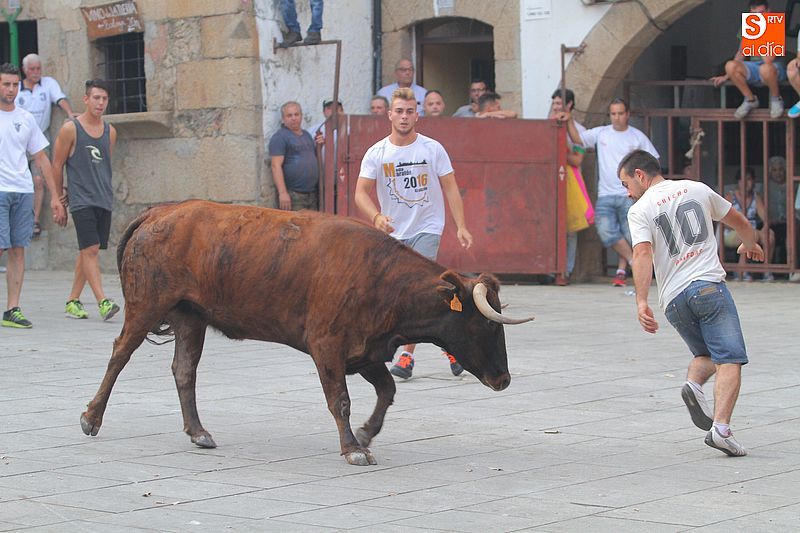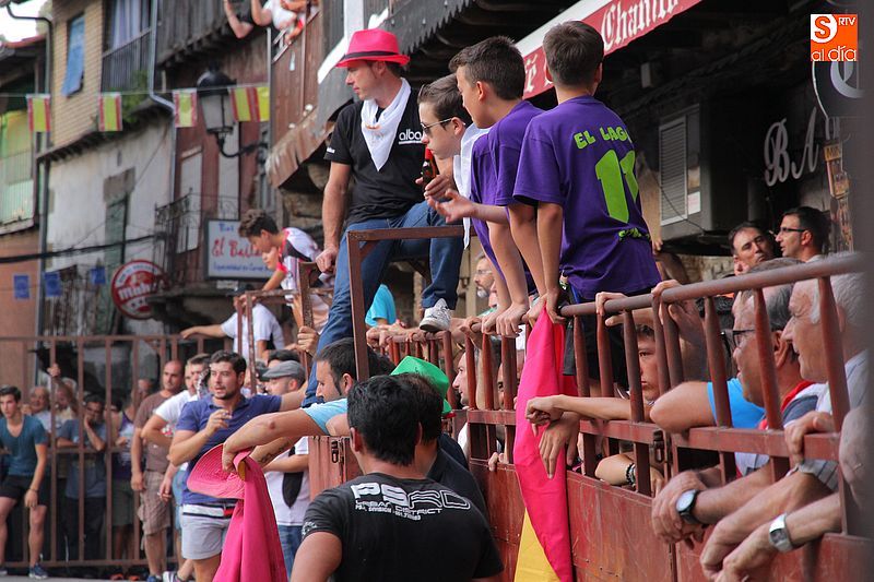 Sotoserrano vivió esta tarde la emoción de las vaquillas con los mejores protagonistas posibles, los propios vecinos. Un total de cuatro animales se soltaron para disfrute de las peñas y todos los valientes que quisieron saltar al ruedo. La plaza Mayor, convertida en coso taurino, se llenó por completo de público que abarrotó los burl