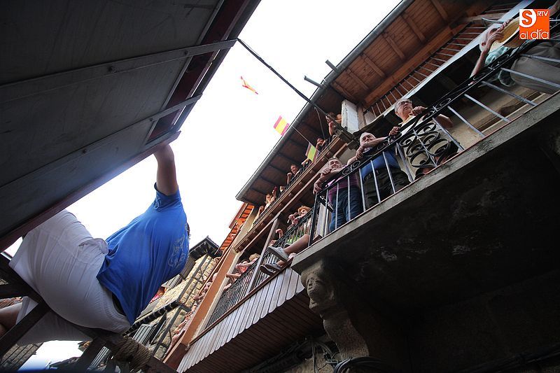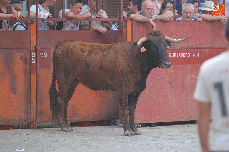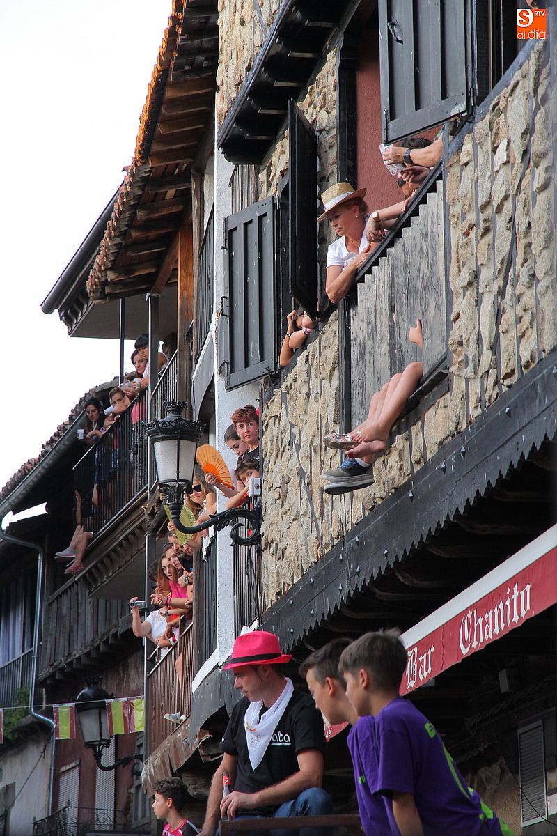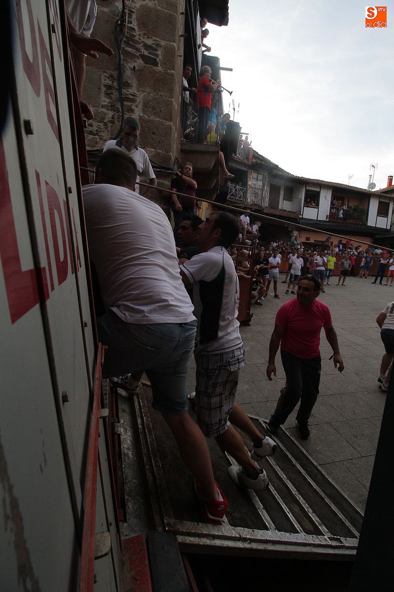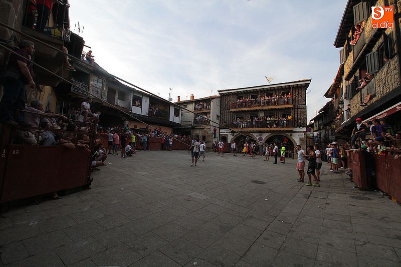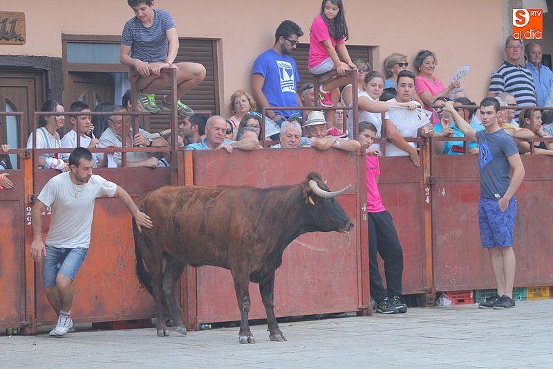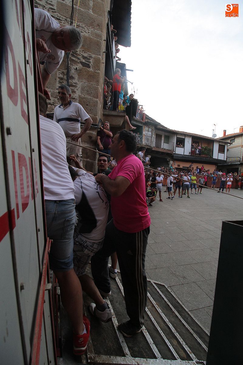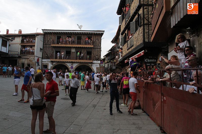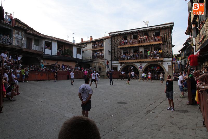 Sotoserrano vivió esta tarde la emoción de las vaquillas con los mejores protagonistas posibles, los propios vecinos. Un total de cuatro animales se soltaron para disfrute de las peñas y todos los valientes que quisieron saltar al ruedo. La plaza Mayor, convertida en coso taurino, se llenó por completo de público que abarrotó los burl