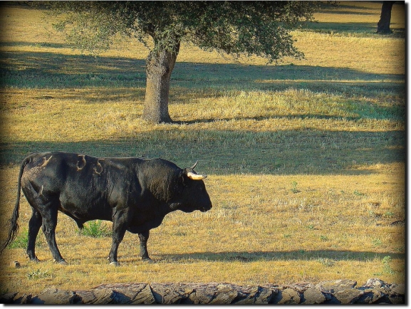 Entre el cielo y la tierra, la presencia del aire, la estela de las estrellas que te cubren, las reses que te acompañan de noche en silencio, las encinas que son eco de tus mugidos, tu libertad, tu corta vida. (Jclp)