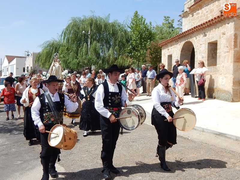 La Virgen de Nuestra Señora del Castillo ha salido del templo de Carrascal de Velambelez escoltada por sus vecinos. Al ritmo de los sones tradicionales de la gaita y el tamboril, la patrona de Carrascal (pedanía de San Pedro del Valle) ha recorrido las calles en procesión tras la cel
