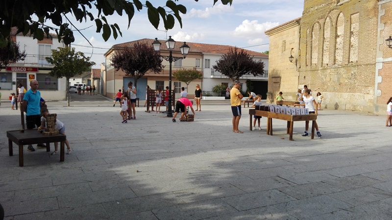 Este sábado, desde las 18:00h hasta el anochecer los pequeños y adultos de Villoria han jugado a los juegos tradicionales en madera gigantes. El calor no ha impedido que todos disfrutaran de una tarde de juego, competición y recuerdos.
