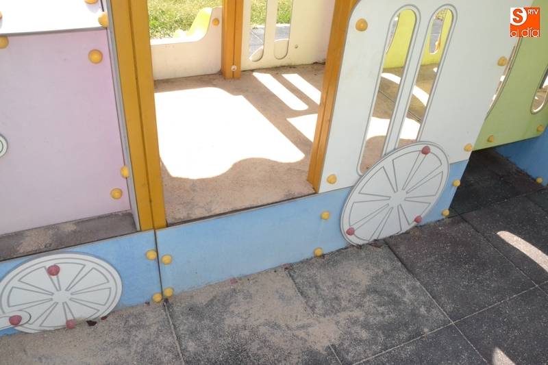 Realmente, y como se puede ver en las imágenes, la principal deficiencia que tiene a día de hoy este parque se sitúa en el arenero que, 'por falta de uso', se está transformando poco a poco en una zona verde. Respecto a otros problemas, se puede apuntar que el tren situado en el parque ha acumulado algo de arena en su interior producto del uso que le han ido dando los niños.