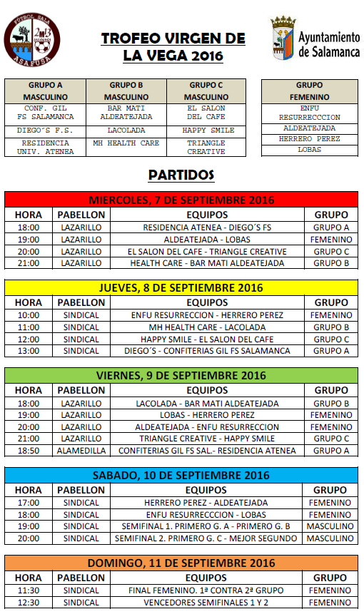 Esta semana comenzarán las Ferias y Fiestas de Salamanca y con ellas el Torneo de Fútbol Sala organizado por Asafusa. Los partidos comenzarán el miércoles 7 y se prolongarán hasta el domingo, cuando se disputarán las finales