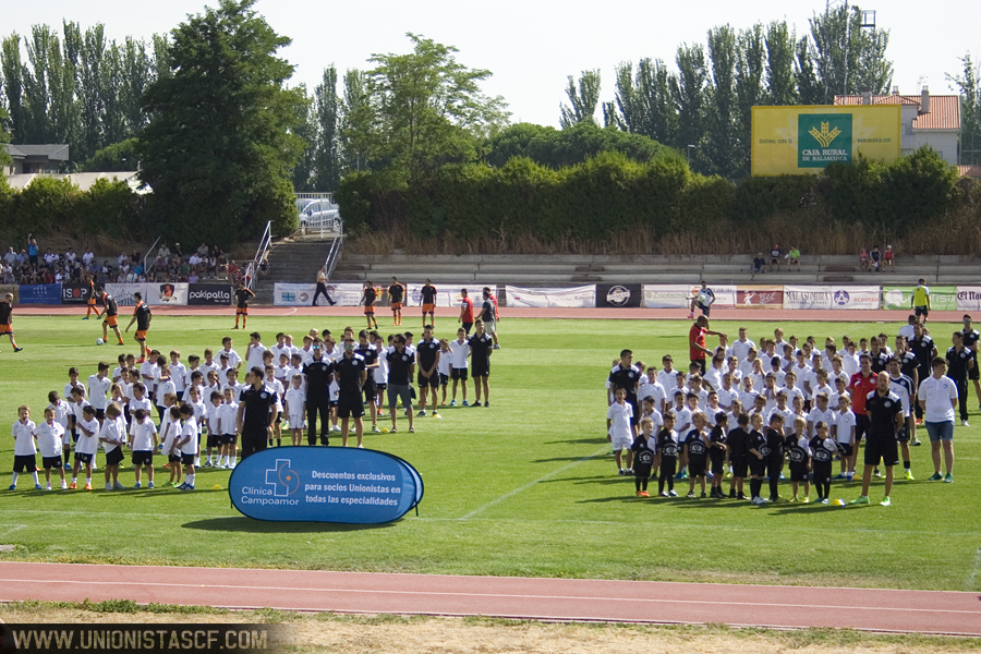 Jornada especial la vivida este domingo con la presentación de todos los equipos de Unionistas de fútbol 7 en las pistas del Helmántico antes del inicio del partido de Unionistas frente al Burgos. Con un gran ambiente en las gradas, los distintos equipos de la cantera unionista salieron al césped para hacerse la foto oficial de la temporada ante su afición.