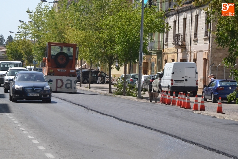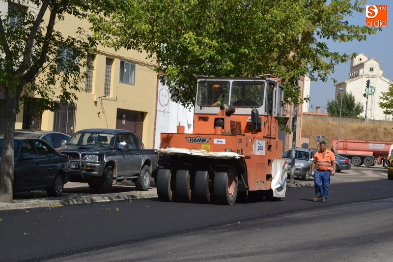 Pese a que el calor sigue sin dar una tregua -con lo cual la operación fue bastante agotadora-, en la mañana del martes se estuvo trabajando en el reasfaltado de parte de la Avenida de España de Ciudad Rodrigo.