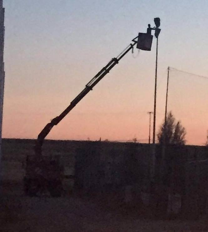 De este modo, la semana pasada se acercó a La Muge un camión-grúa de la empresa Electricidad Casado, que procedió a girar los focos del campo de tierra en dirección al campo de césped artificial, con un resultado altamente satisfactorio, ya que se ha conseguido -orientando los focos de forma adecuada- iluminar prácticamente la mitad del nuevo campo.