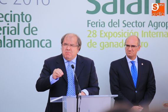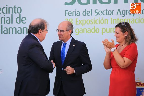 El presidente de la Diputación, Javier Iglesias, ha remarcado hoy, durante la inauguración oficial de Salamaq, el excepcional escaparate que representa este certamen para los agricultores y ganaderos, "acercando el necesario y poco reconocido mundo rural al mundo urbano". El acto, que ha contado con la presencia del presidente de la Junta, Juan Vicente Herrera; la delegada del Gobierno en Castilla y León, María José Salgueiro; la consejera de Agricultura, Milagros Marcos y el alcalde de la ciudad, Alfonso Fernández Mañueco, se ha visto empañado por los reiterados gritos -'Salamacna viva, no radioactiva' o 'Vergüenza me daría poner una mina'-, cencerradas y reivindicaciones de la Plataforma Stop Uranio, obligando al presidente a pedir silencio. Ni era el momento, ni el lugar para una protesta que recibió más rechazo que aprobación por parte del público que, ante un sofocante calor, acudió al acto oficial.