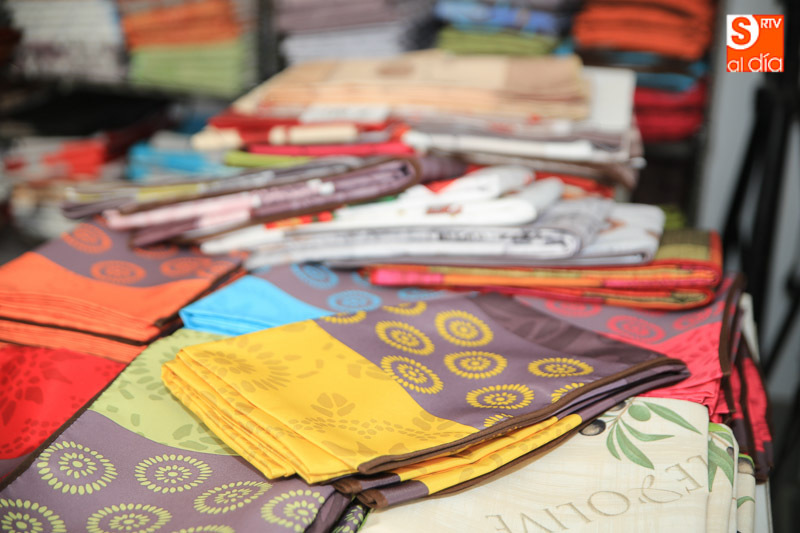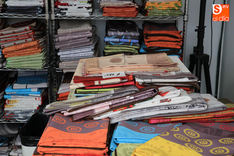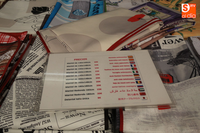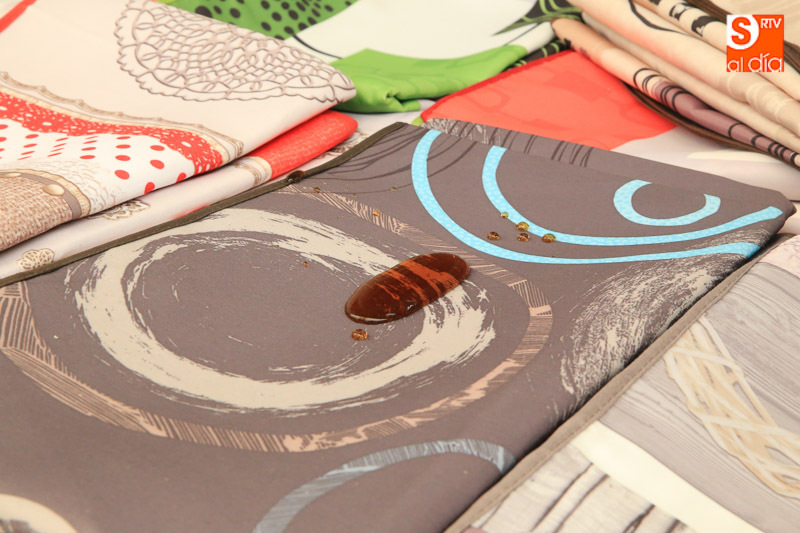 Este stand está disponible en Salamaq hasta el domingo, y no solo ofrece manteles, también delantales anti-manchas con variedad de diseños. Para los manteles, más de 100 colores diferentes de estilo moderno, clásico, rústico y para todos los gustos. "Salamanca es una de las mejores ferias porque aunque haya crisis se vende, es un producto que se vende siempre porque forma parte de tu casa, y es un compra inteligente", explica Francisco Javier.