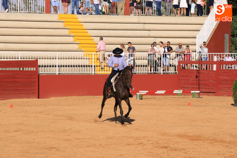 Equitación de trabajo, doma, velocidad y manejabilidad con obstáculos ha sido el espectáculo ofrecido hoy en el anillo de exhibiciones del recinto ferial. Mañana viernes, a partir de las 19 horas, se celebra la segunda novillada de Hermanos Sánchez Herrero para los alumnos Ángel Téllez, de la Escuela de Tauromaquia de Madrid "Marcial Lalanda"; Manuel Martín, de la Escuela de Tauromaquia de Salamanca y Juan Romero Campos, de la Escuela de Tauromaquia de Guadalajara. La final será el domingo.