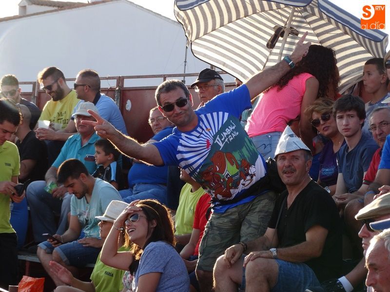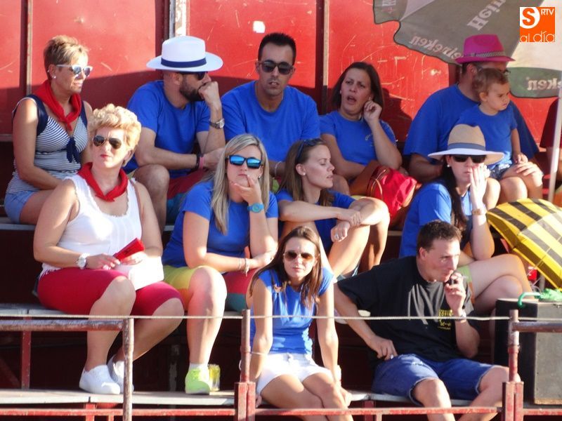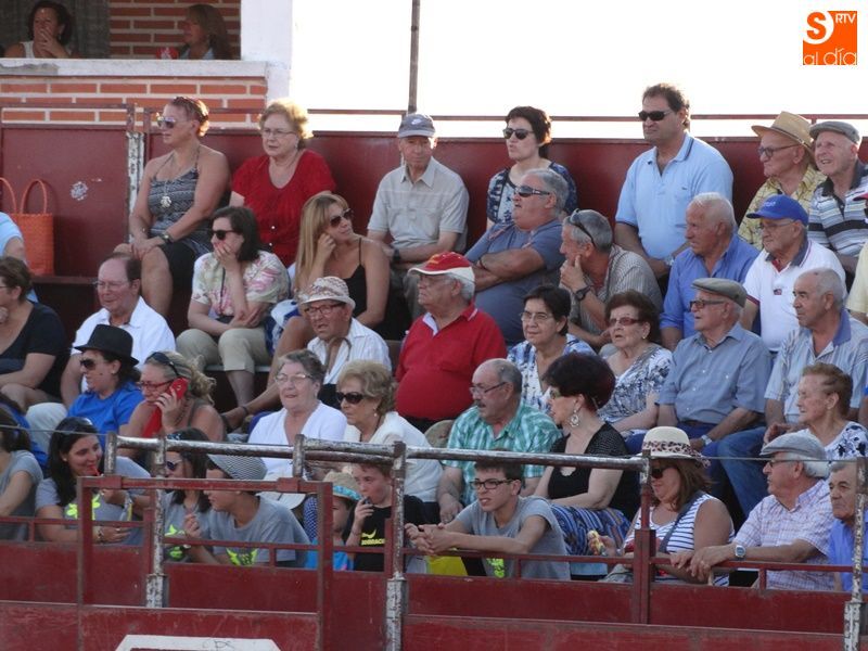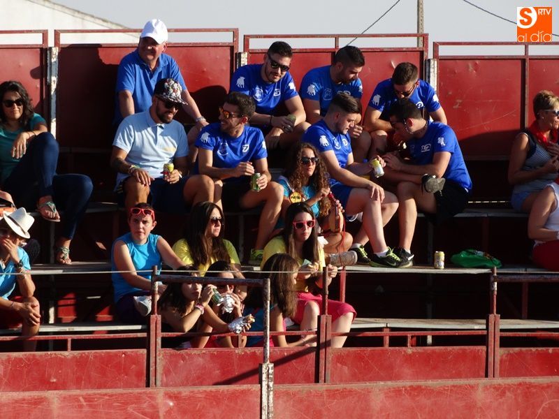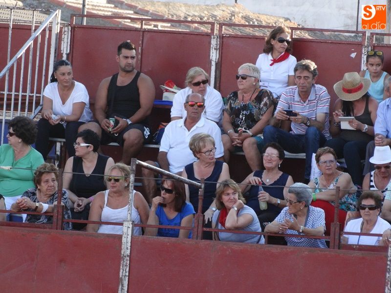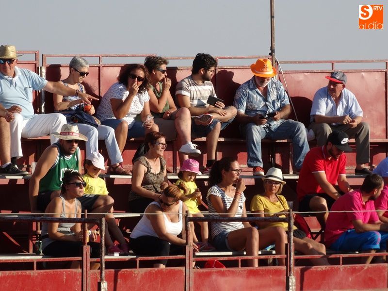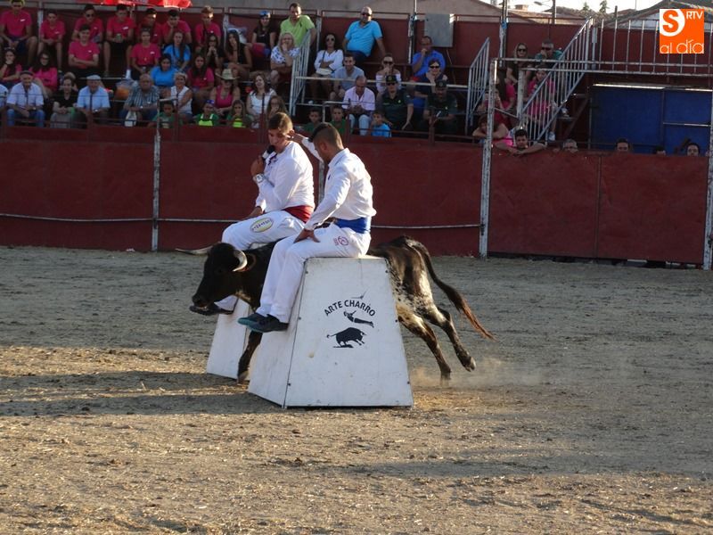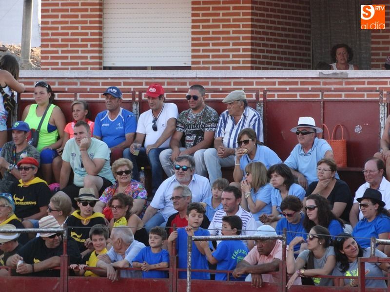 El grupo de recortadores 'Arte Charro' ha dado lo mejor de sí mismo este jueves en la plaza de toros de Cantalapiedra, donde han ofrecido una espectacular exhibición de saltos, cortes y quiebros que ha sido aplaudida con ganas por los vecinos. El evento ha contado con un público muy numeroso, en la zona de sombra no quedaba ningún hueco libre.