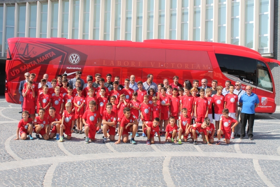 La UD Santa Marta ha presentado este viernes el nuevo autobús del club con el que pretende que sus equipos puedan viajar con la máxima comodidad para afrontar sus encuentros a domicilio.
