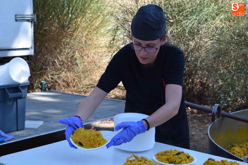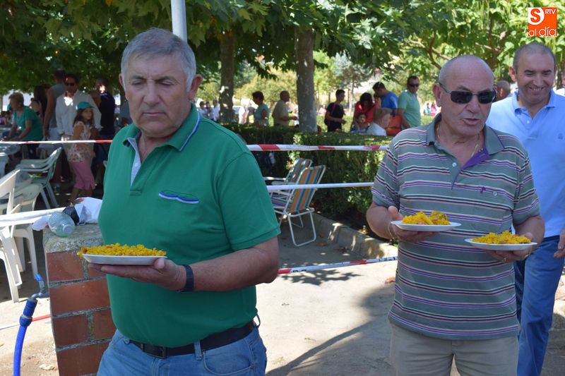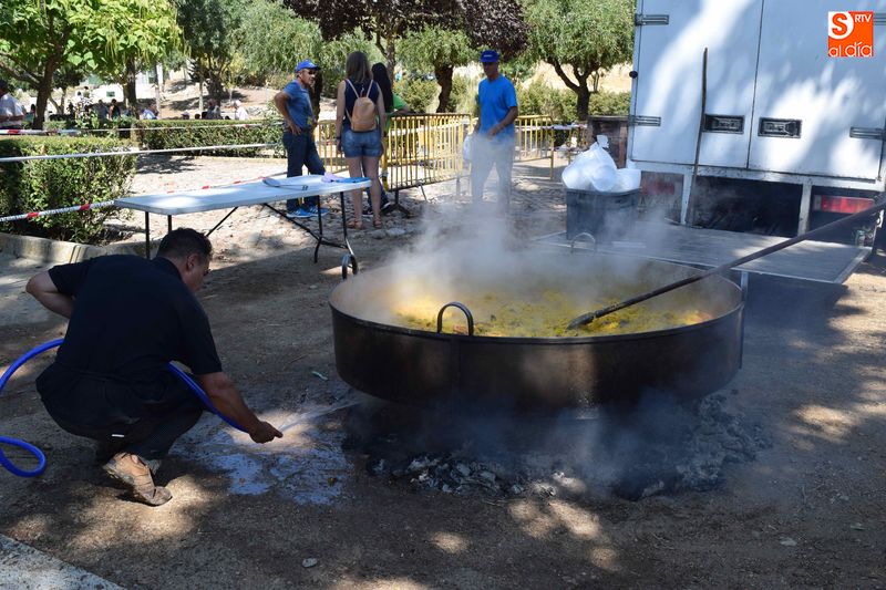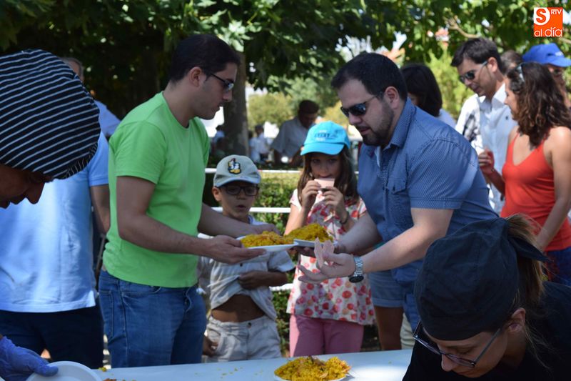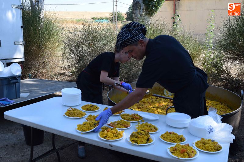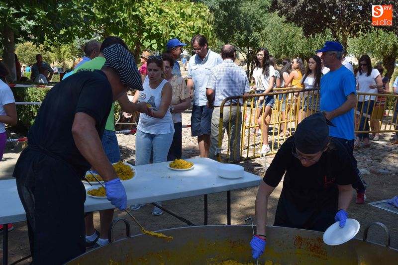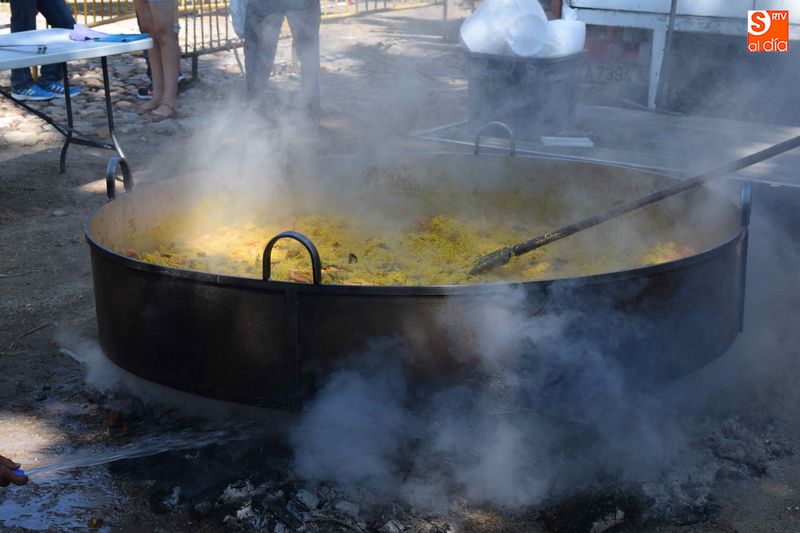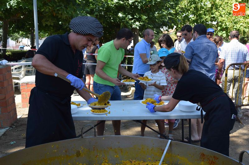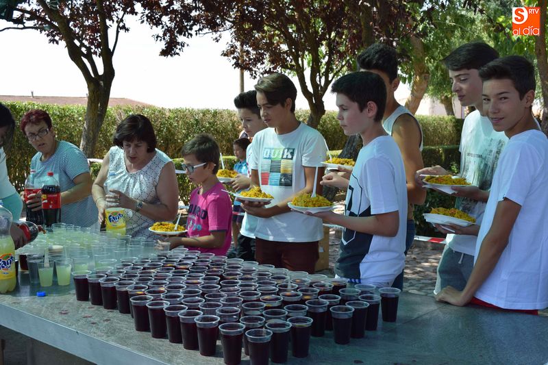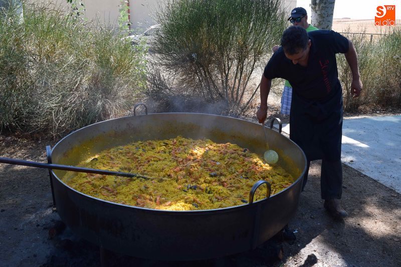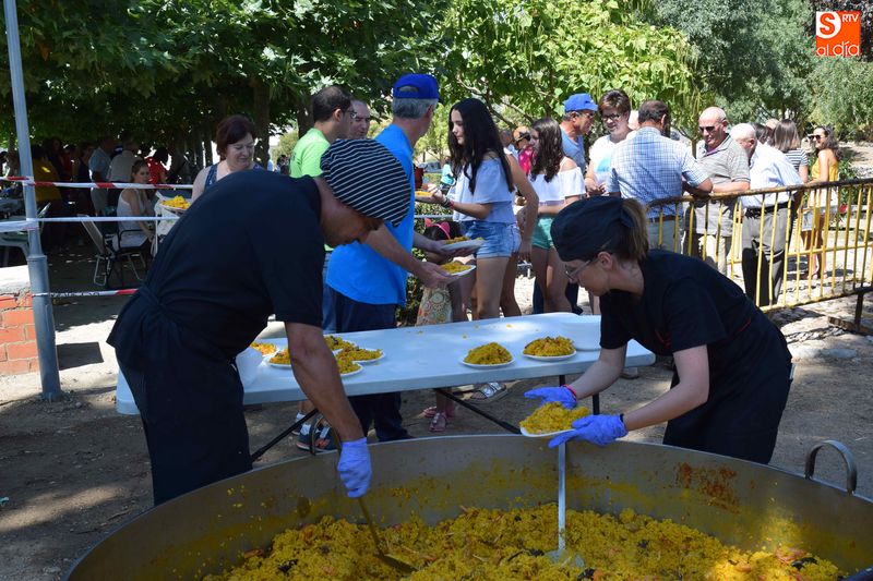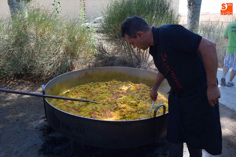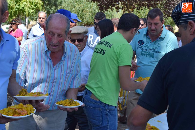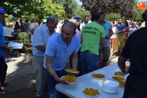 El parque de Navales se vio convertido esta mediodía en un improvisado comedor para albergar a las más de seiscientas personas que se dieron cita en el municipio para disfrutar de una exquisita paella. Familias, amigos y vecinos de todas las edades trajeron sus mesas y sillas de casa para disfrutar, en buena compañia, de la comida, que sirvió para estrechar lazos y coger fuerzas de cara a los dos días de celebraciones que restan en Navales.