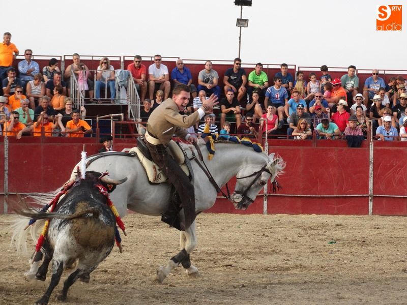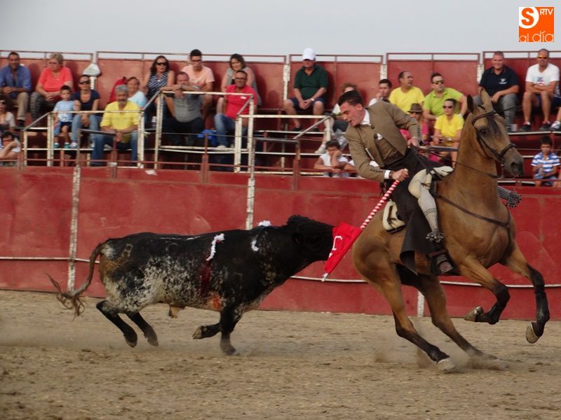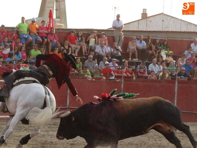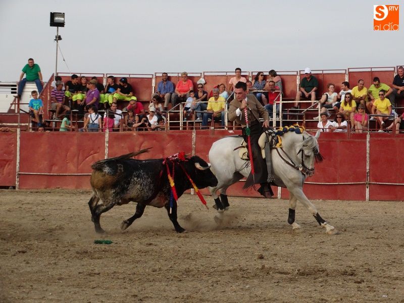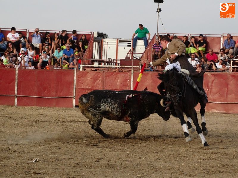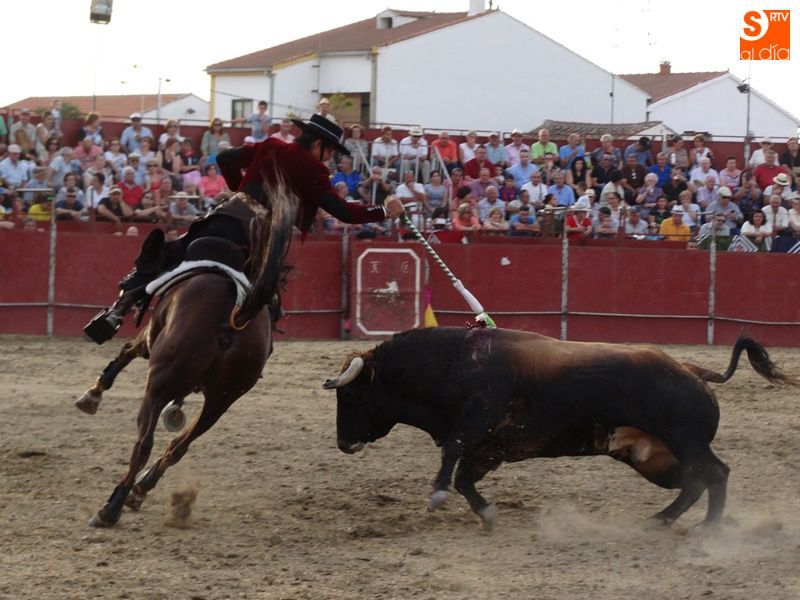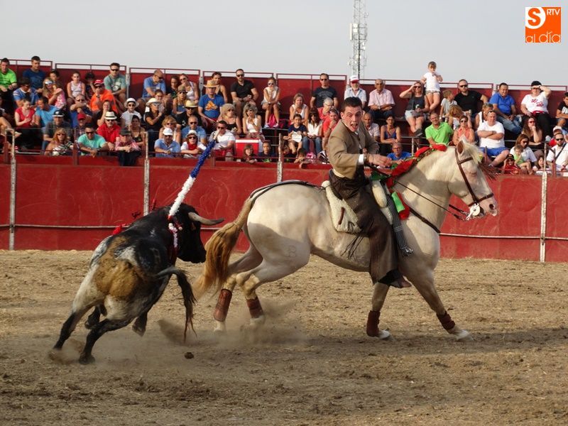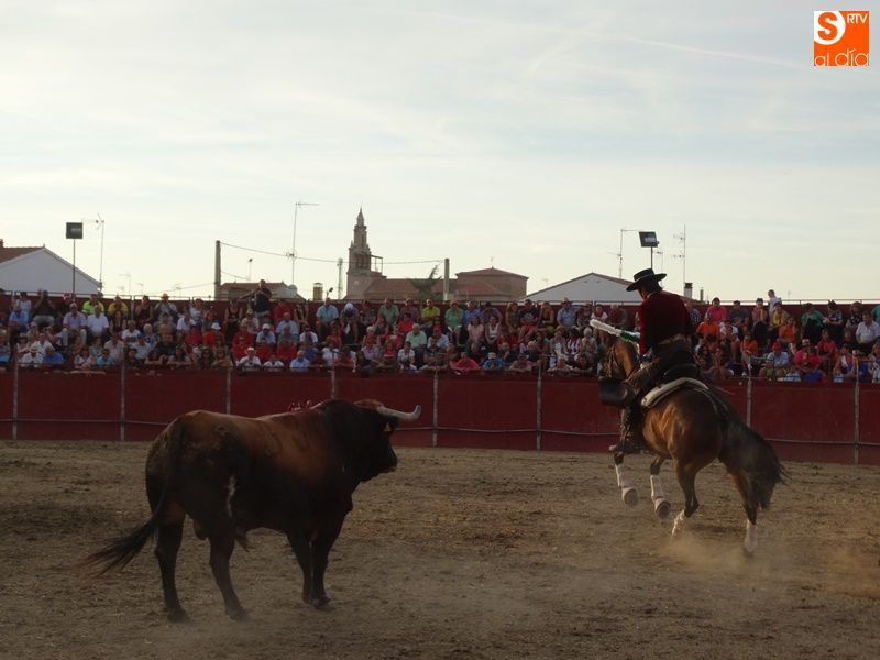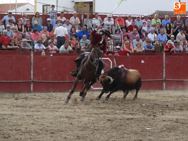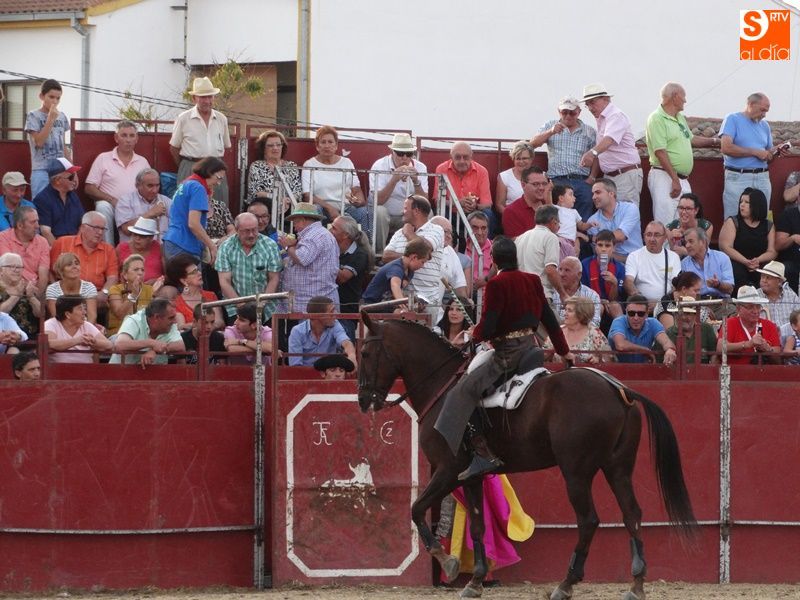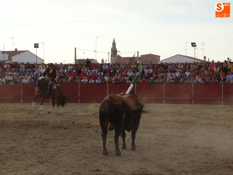 Los vecinos de Cantalapiedra y visitantes de pueblos cercanos han disfrutado este sábado de una buena tarde de toros con la corrida de rejones, en la que Óscar Borjas y J. Manuel Hernández han lidiado cuatro toros de la ganadería de los Hermanos Cambronel. Una suelta de vaquillas al estilo tradicional ha seguido al festejo taurino, uno de los más destacados del programa de las fiestas de la localidad.