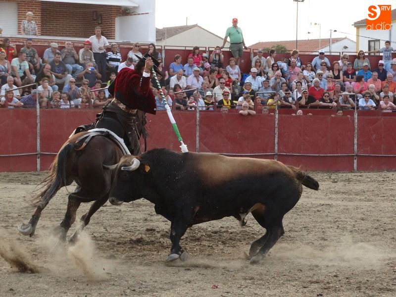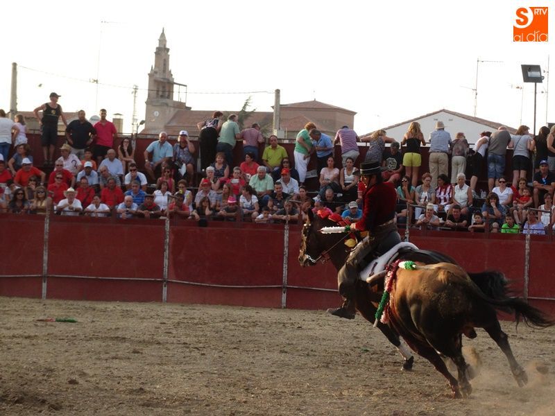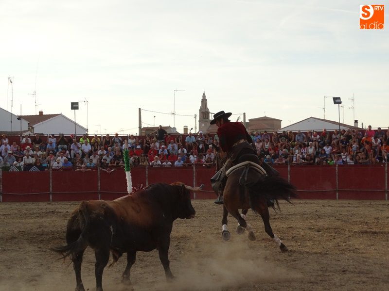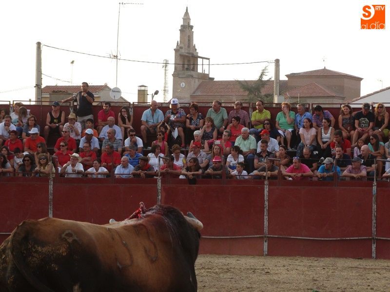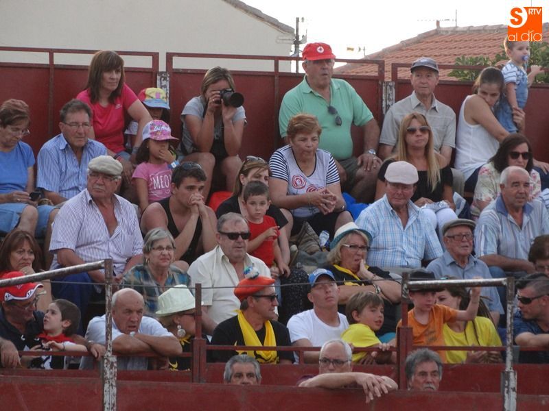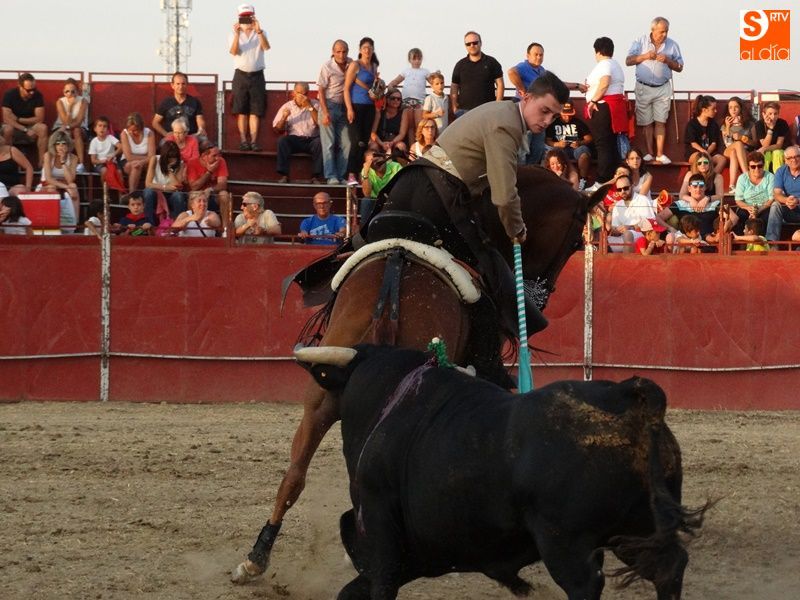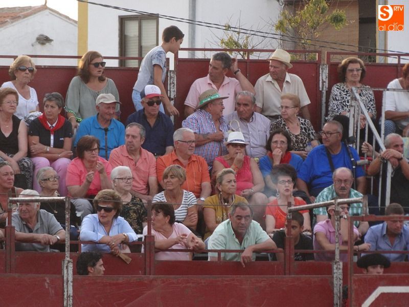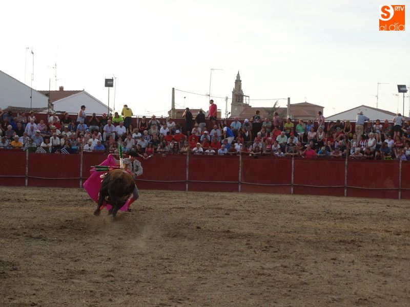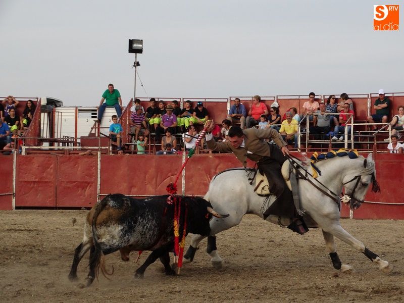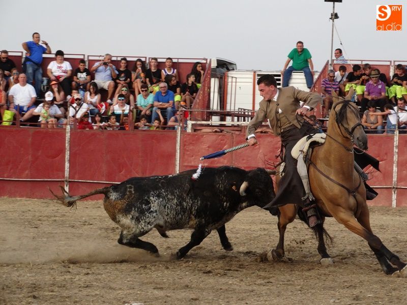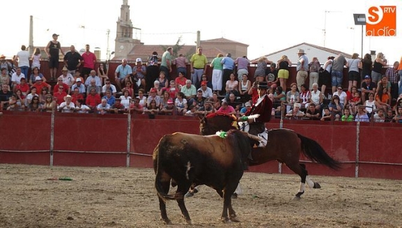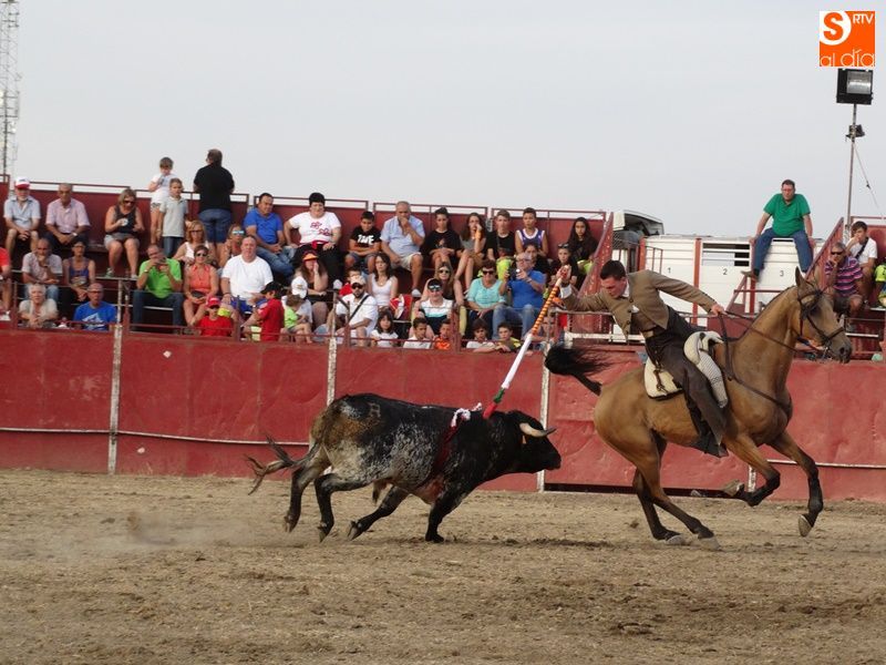 Los vecinos de Cantalapiedra y visitantes de pueblos cercanos han disfrutado este sábado de una buena tarde de toros con la corrida de rejones, en la que Óscar Borjas y J. Manuel Hernández han lidiado cuatro toros de la ganadería de los Hermanos Cambronel. Una suelta de vaquillas al estilo tradicional ha seguido al festejo taurino, uno de los más destacados del programa de las fiestas de la localidad.