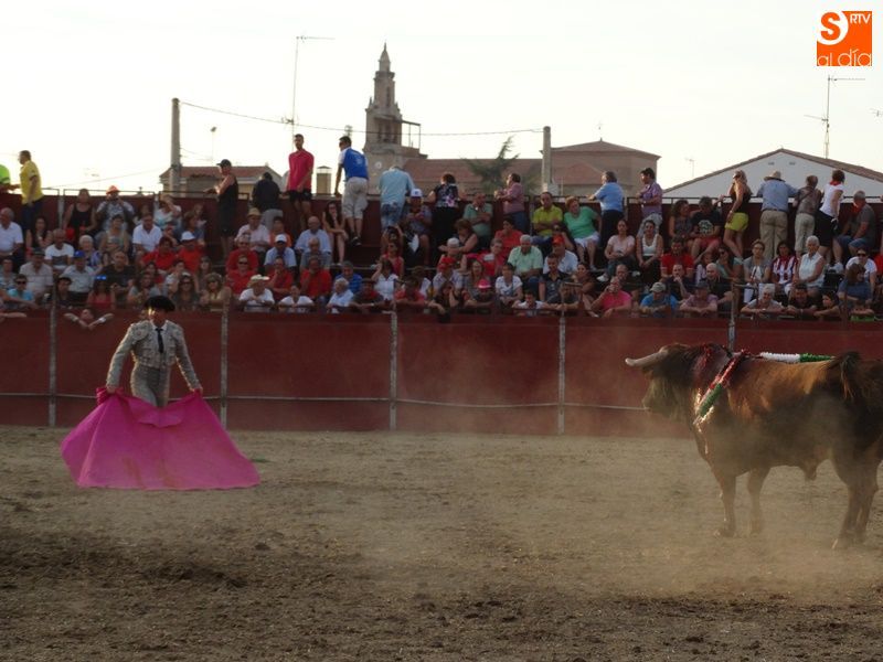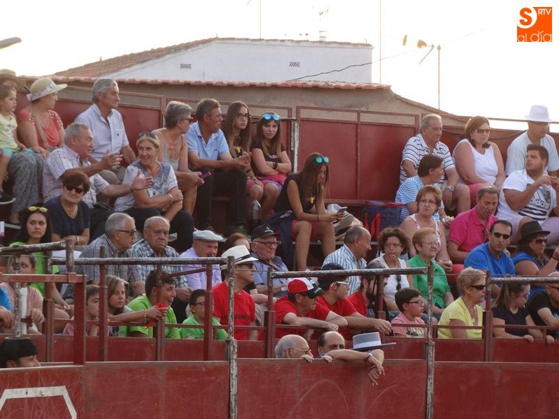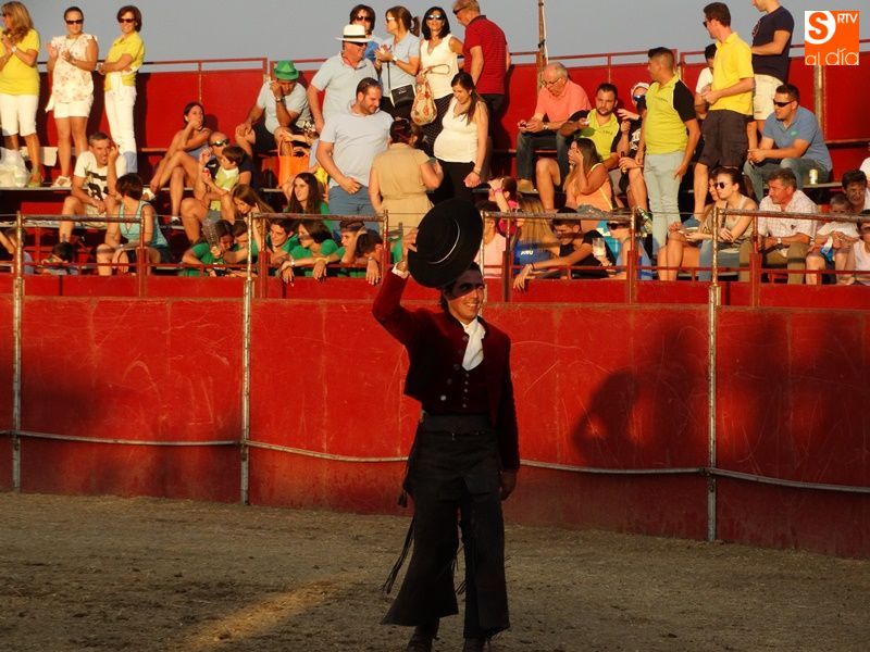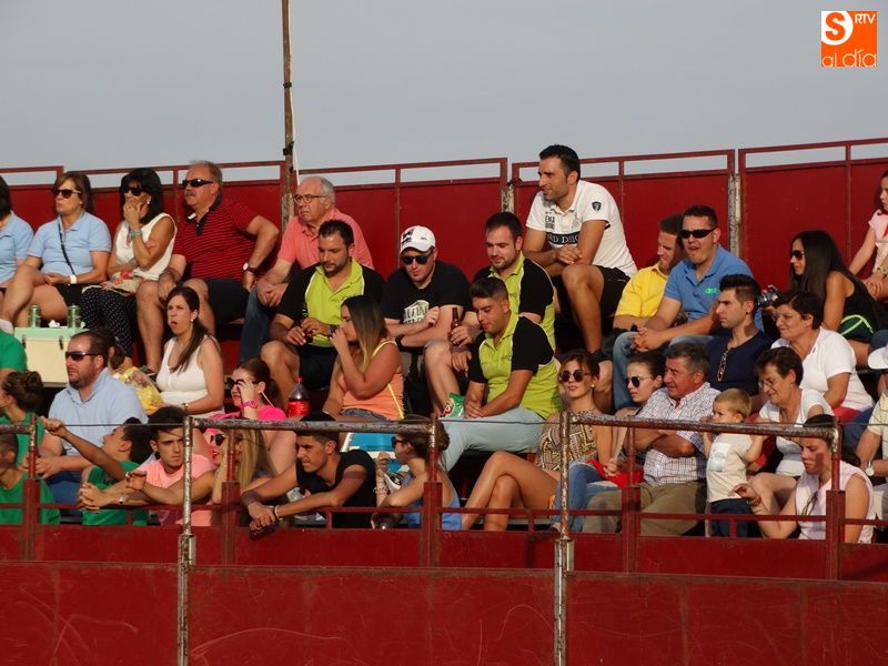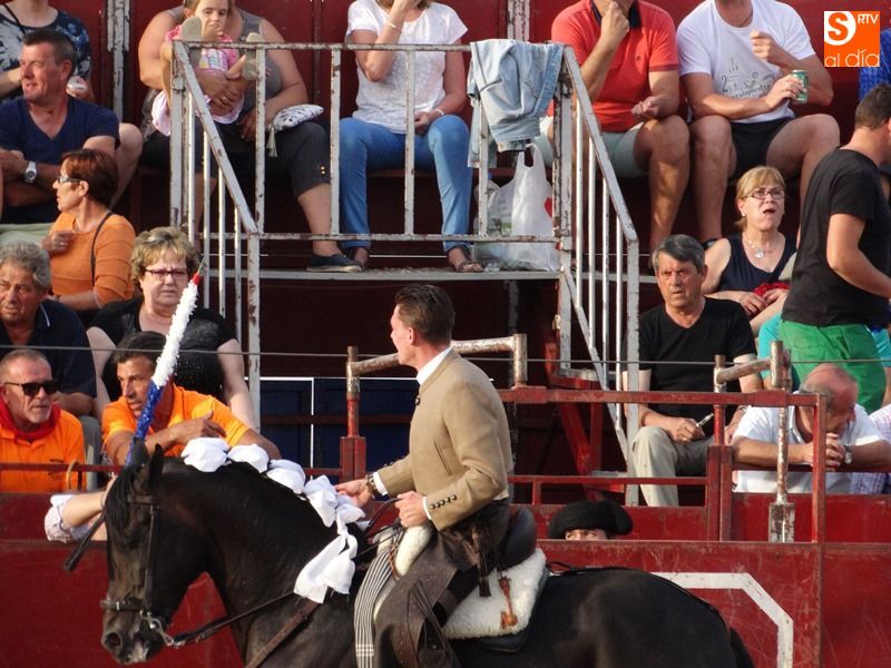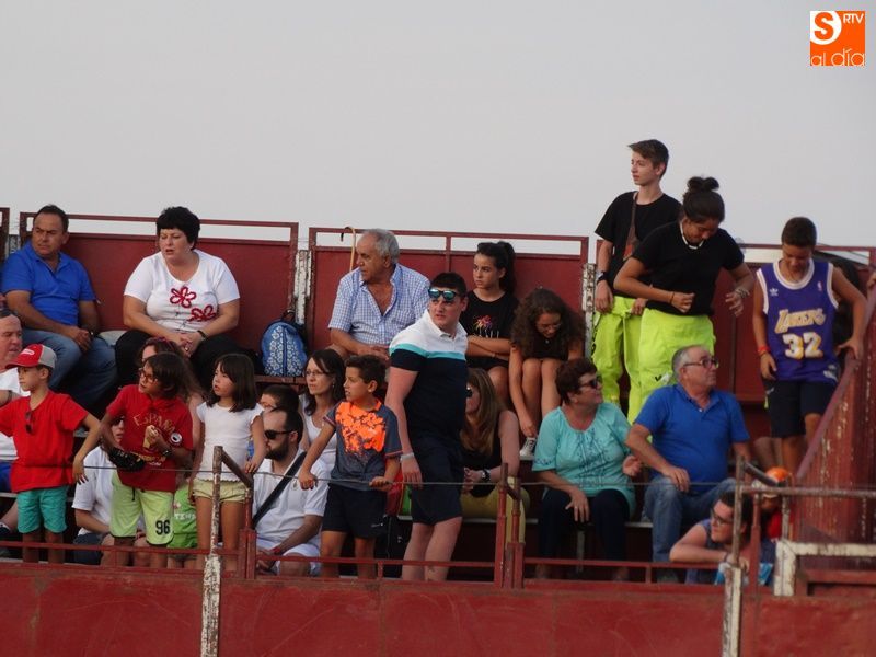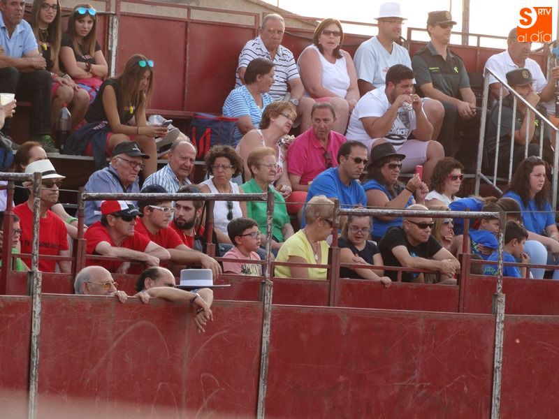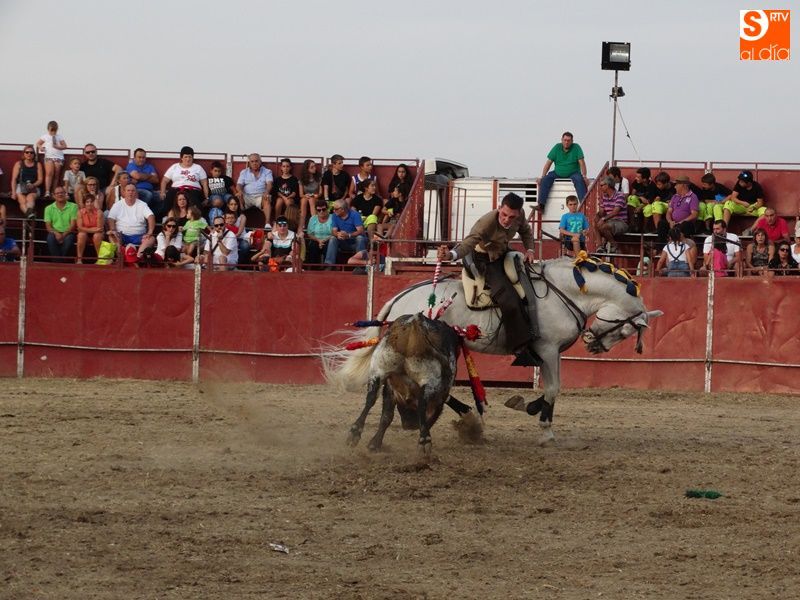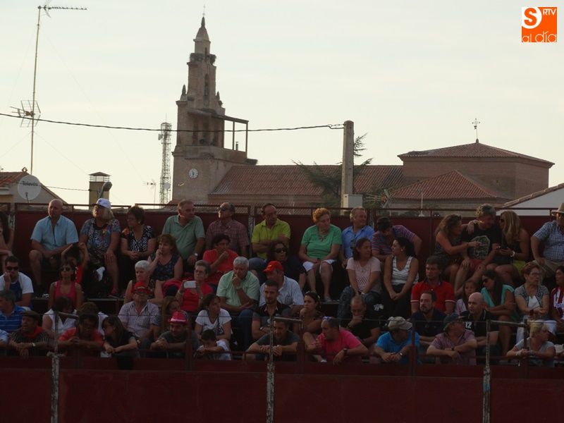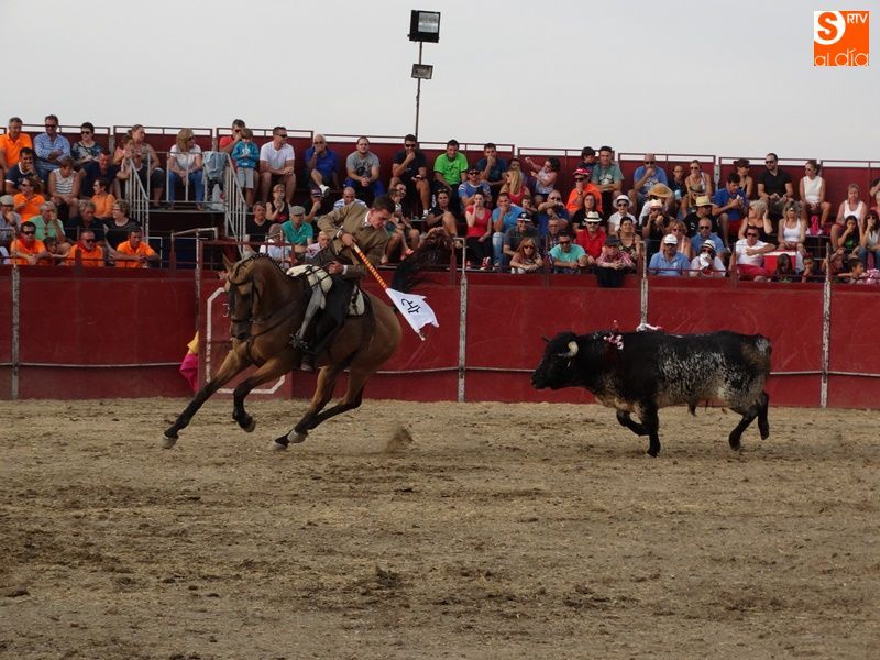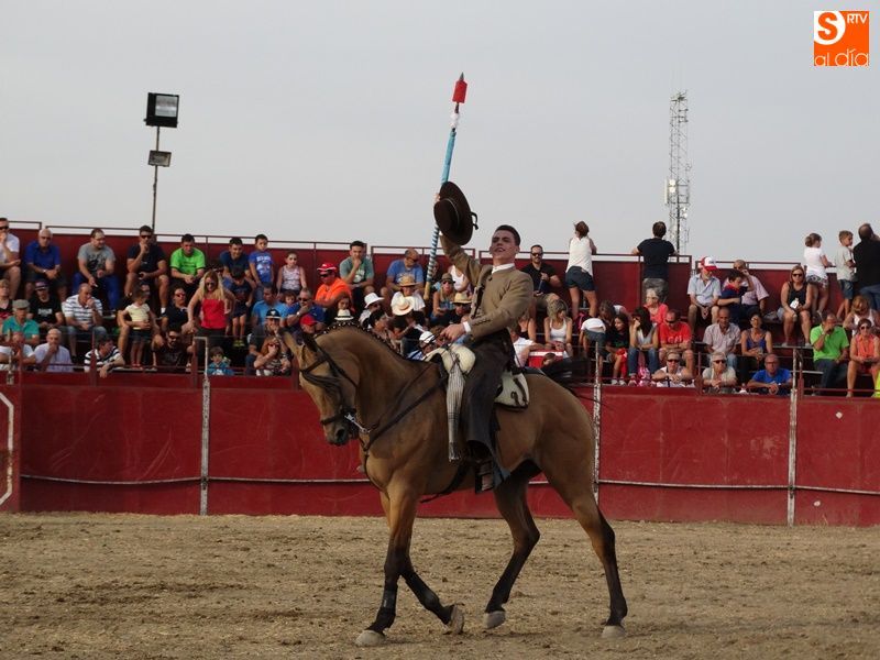 Los vecinos de Cantalapiedra y visitantes de pueblos cercanos han disfrutado este sábado de una buena tarde de toros con la corrida de rejones, en la que Óscar Borjas y J. Manuel Hernández han lidiado cuatro toros de la ganadería de los Hermanos Cambronel. Una suelta de vaquillas al estilo tradicional ha seguido al festejo taurino, uno de los más destacados del programa de las fiestas de la localidad.