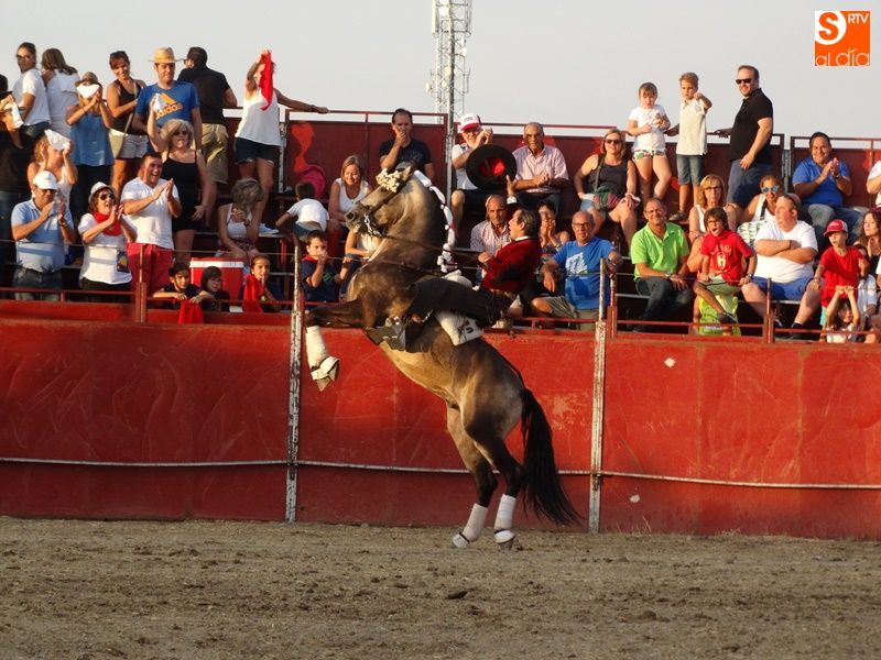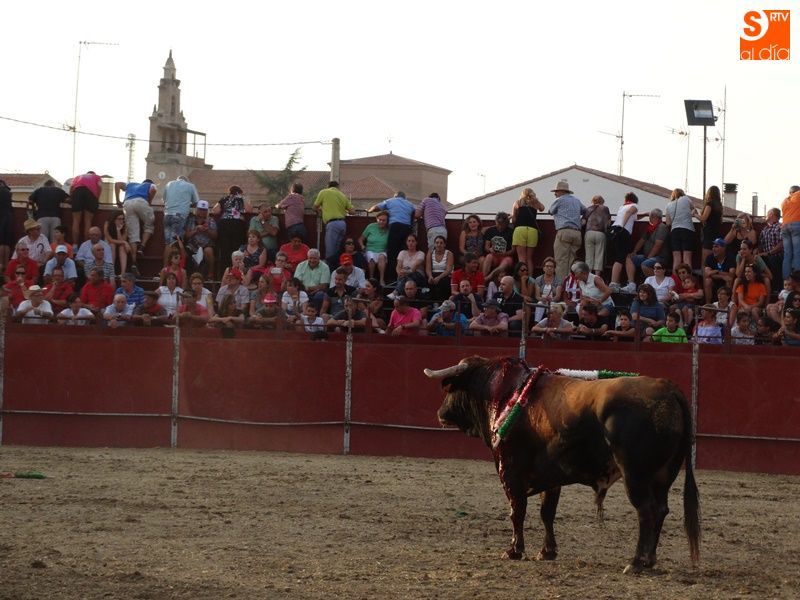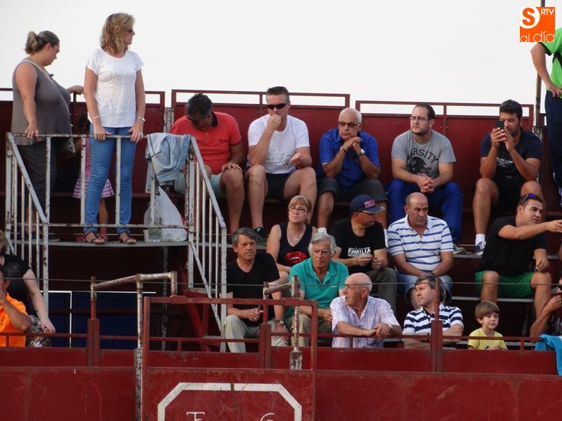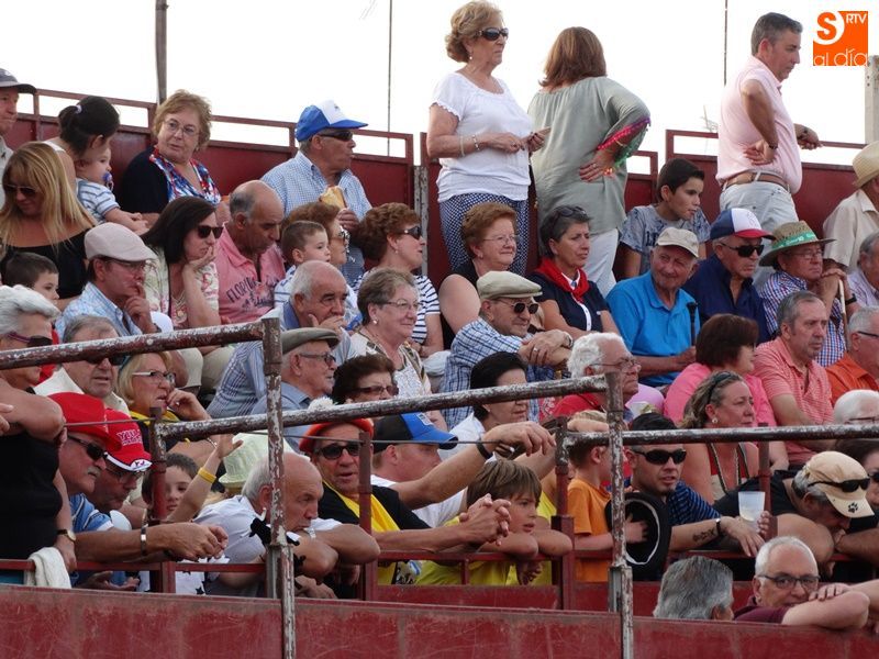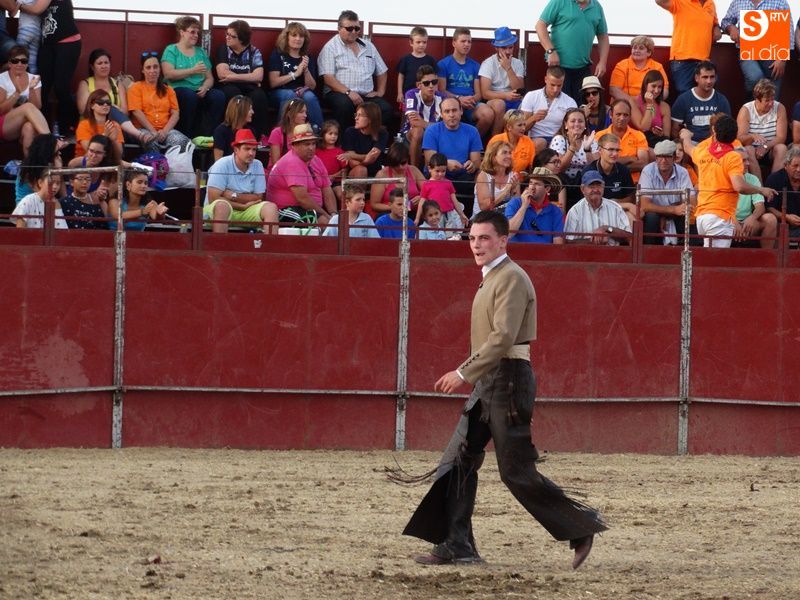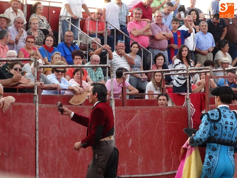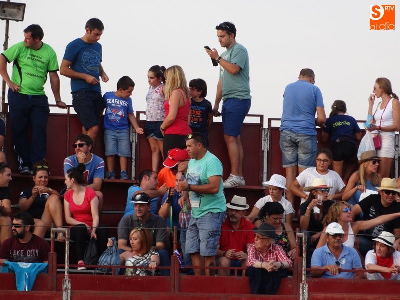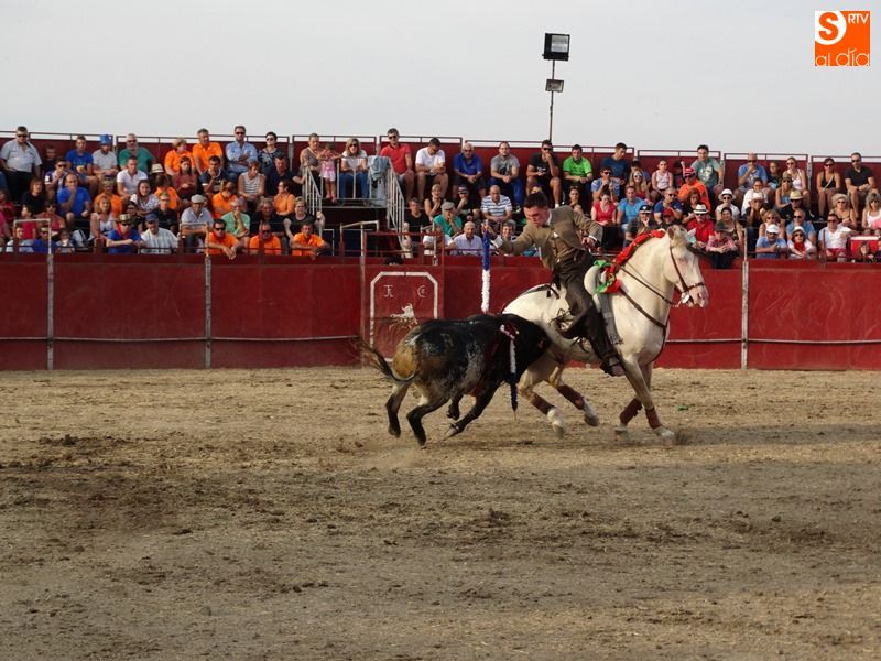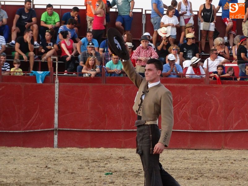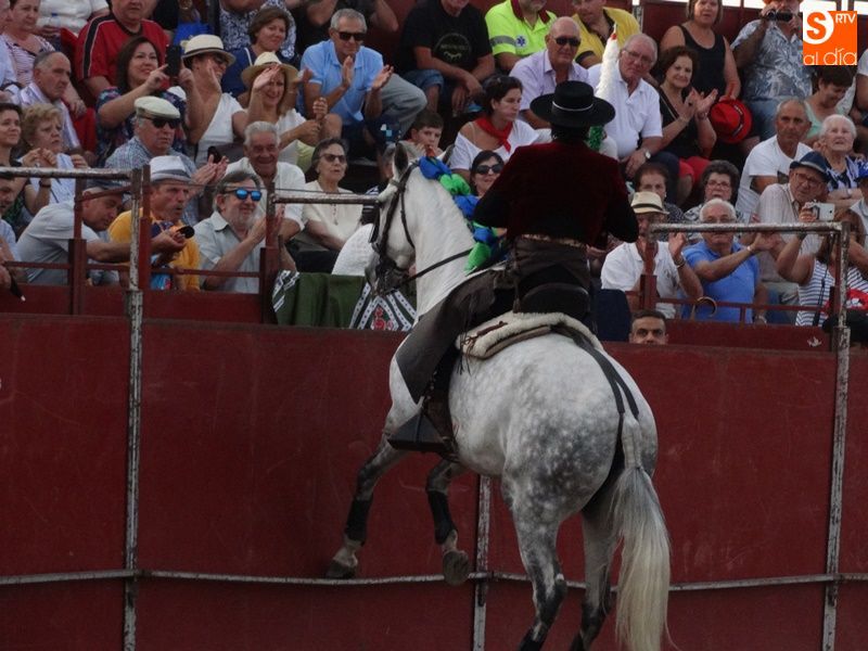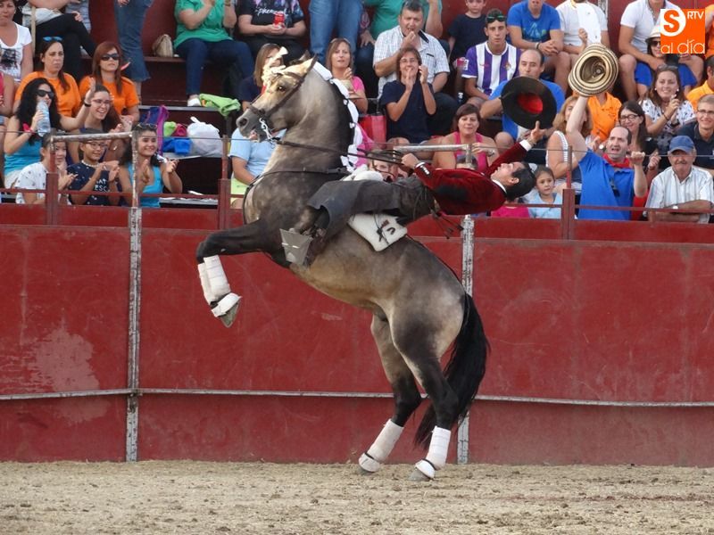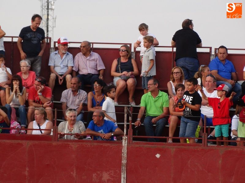 Los vecinos de Cantalapiedra y visitantes de pueblos cercanos han disfrutado este sábado de una buena tarde de toros con la corrida de rejones, en la que Óscar Borjas y J. Manuel Hernández han lidiado cuatro toros de la ganadería de los Hermanos Cambronel. Una suelta de vaquillas al estilo tradicional ha seguido al festejo taurino, uno de los más destacados del programa de las fiestas de la localidad.
