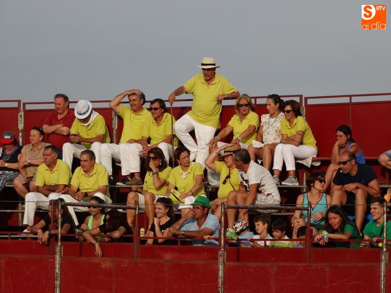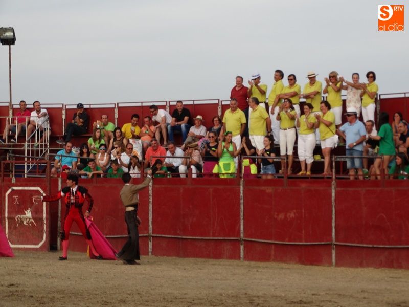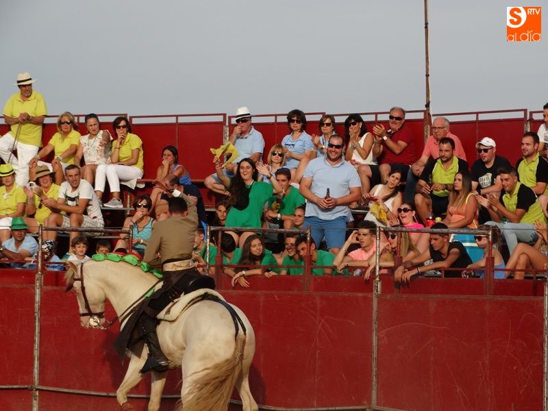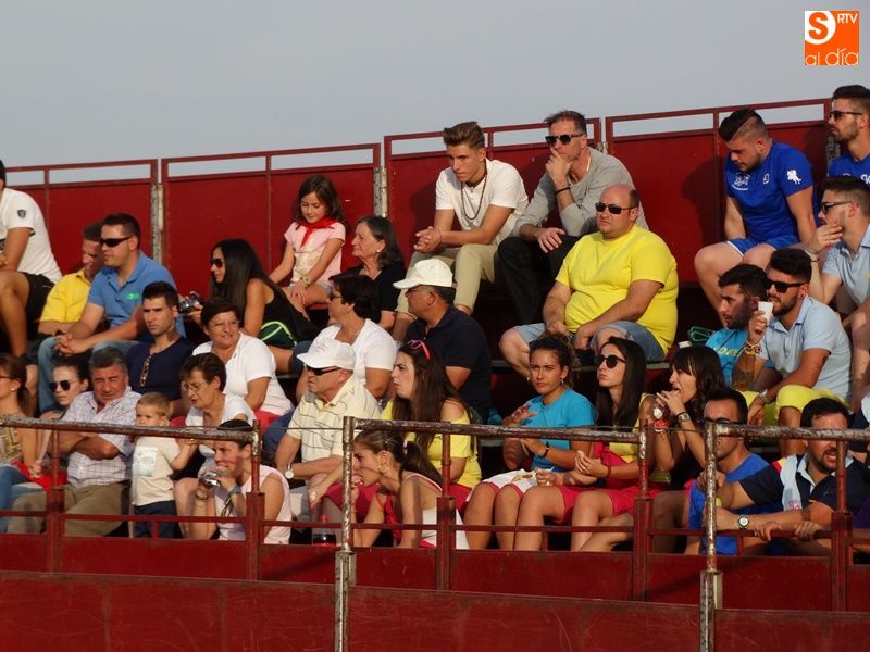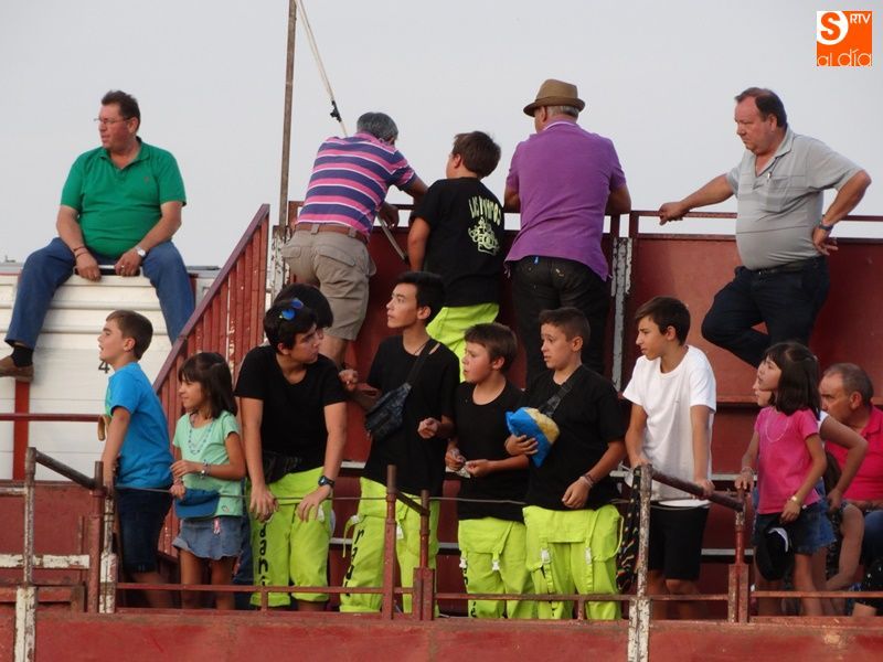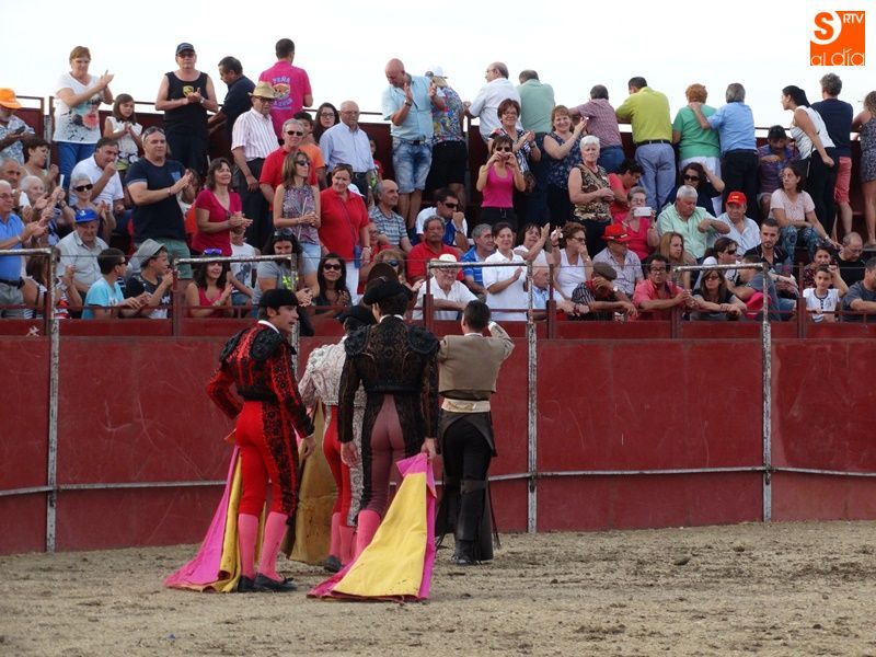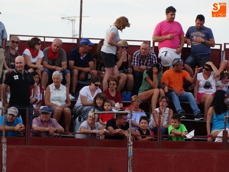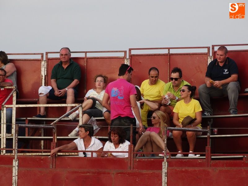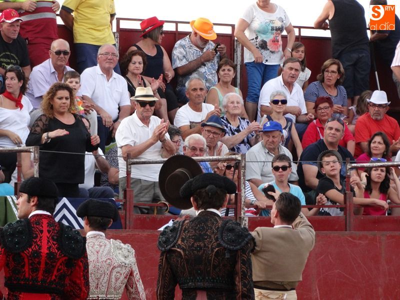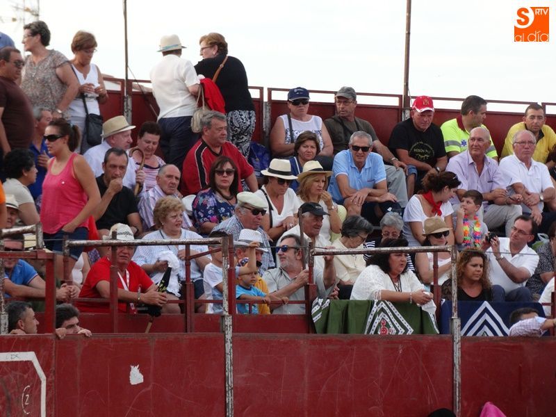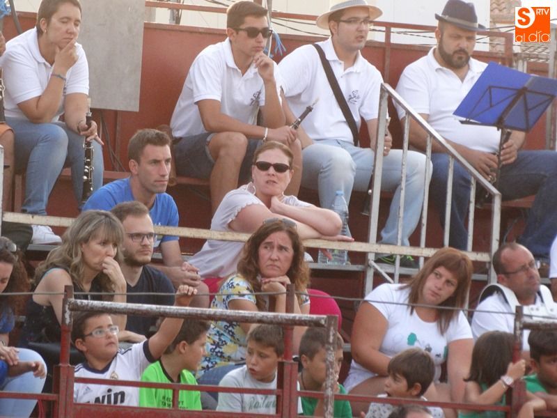 Los vecinos de Cantalapiedra y visitantes de pueblos cercanos han disfrutado este sábado de una buena tarde de toros con la corrida de rejones, en la que Óscar Borjas y J. Manuel Hernández han lidiado cuatro toros de la ganadería de los Hermanos Cambronel. Una suelta de vaquillas al estilo tradicional ha seguido al festejo taurino, uno de los más destacados del programa de las fiestas de la localidad.