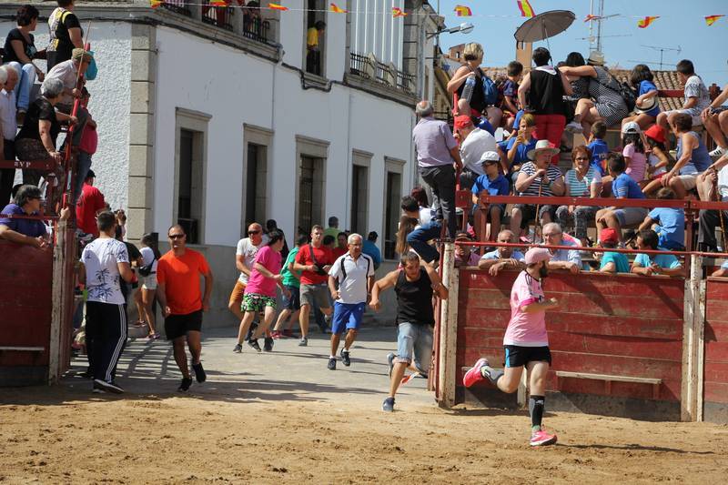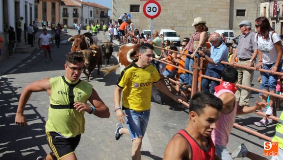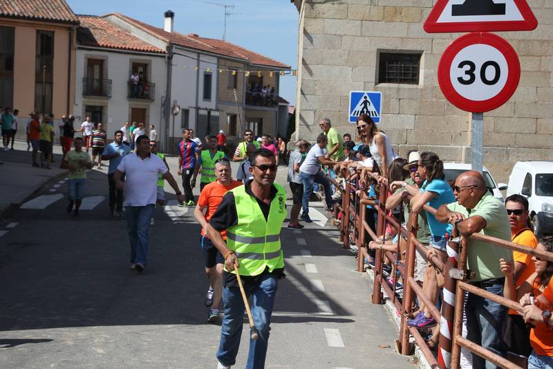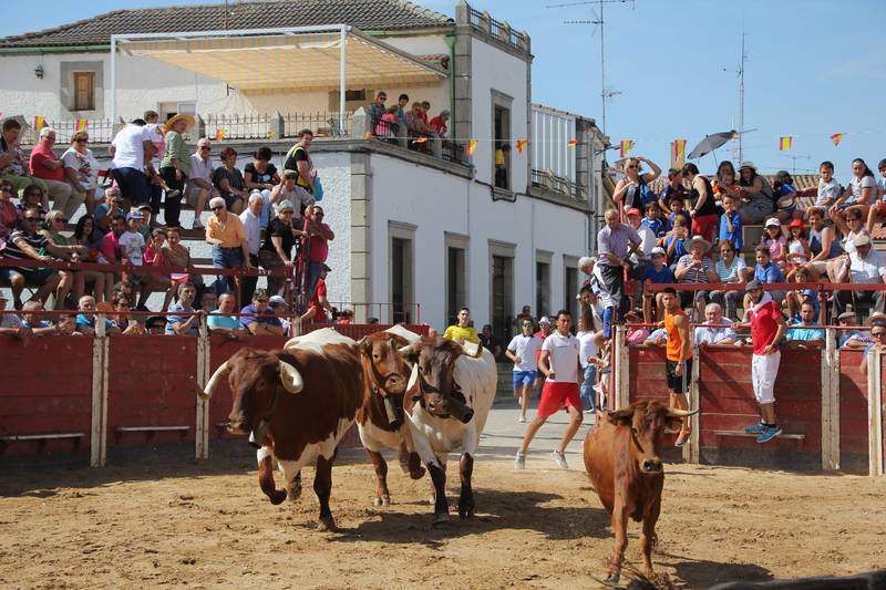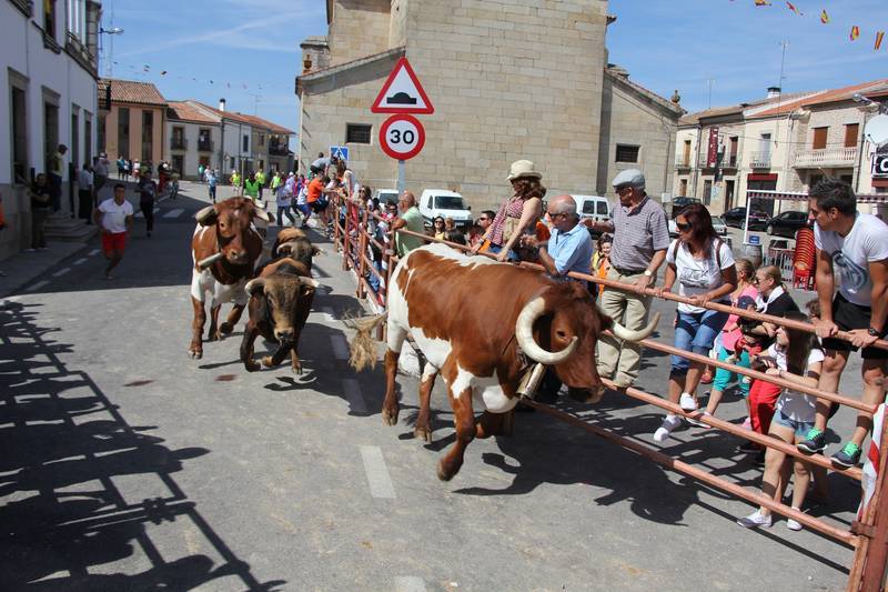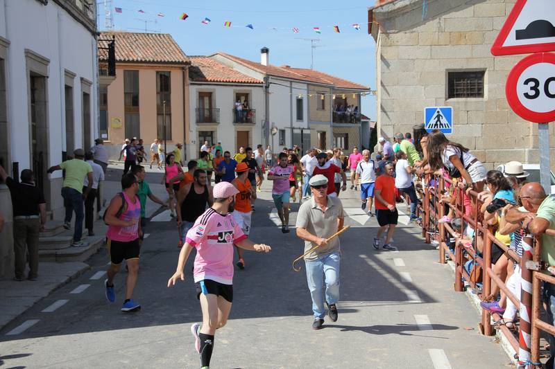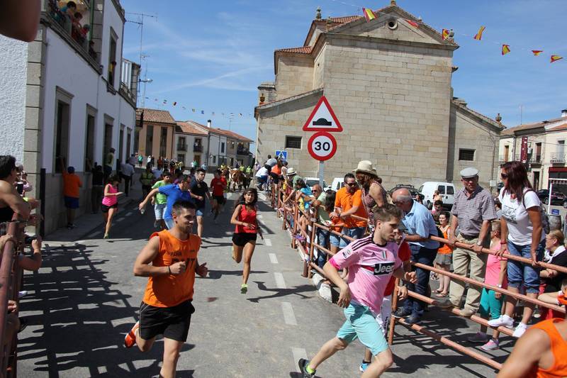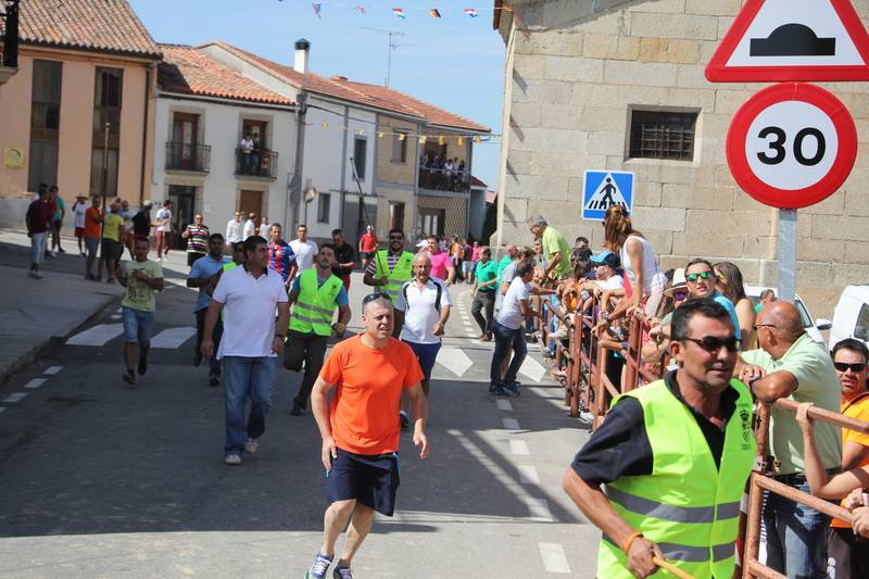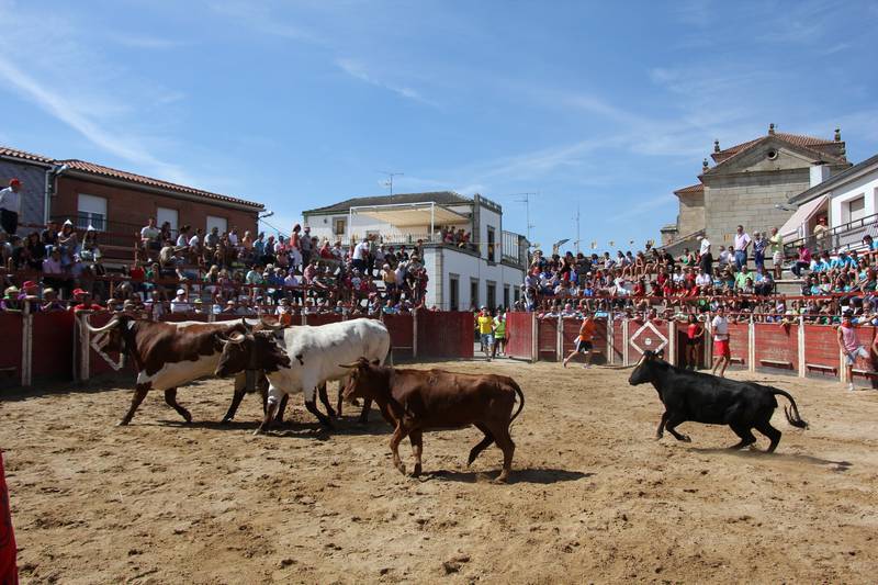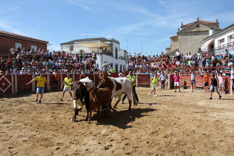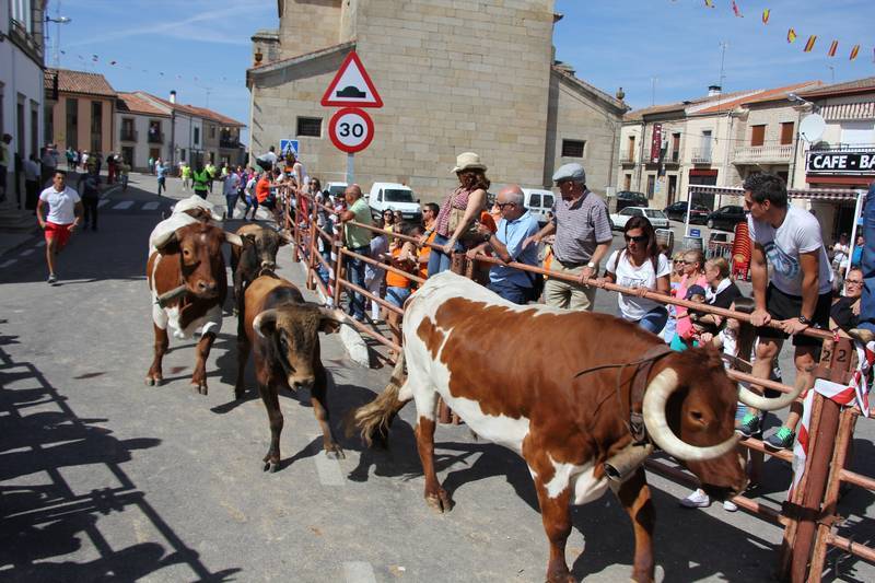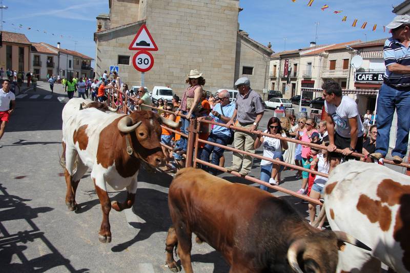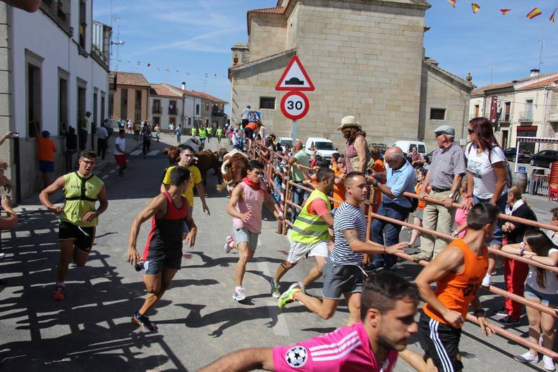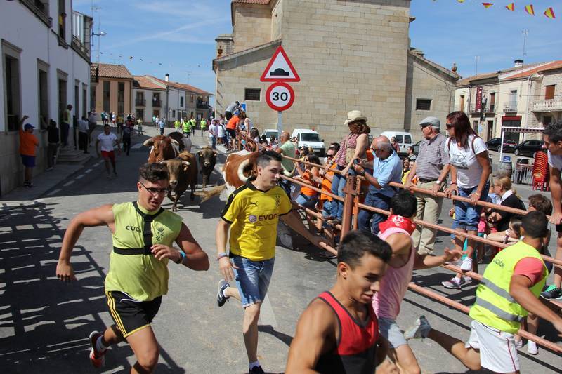 En primer lugar se corrieron dos erales de la ganadería de Rollanejo, de El Cubo de Don Sancho, bien presentados y colorados de capa, que no dieron problema alguno ni en el recorrido ni para entrar a chiqueros, a lo que contribuyeron los bueyes de hermanos Sánchez, que obligan a los aficionados a estar más pendientes de su presencia que de los novillos. En segundo lugar se corrieron dos vacas en un segundo encierro sin problemas.