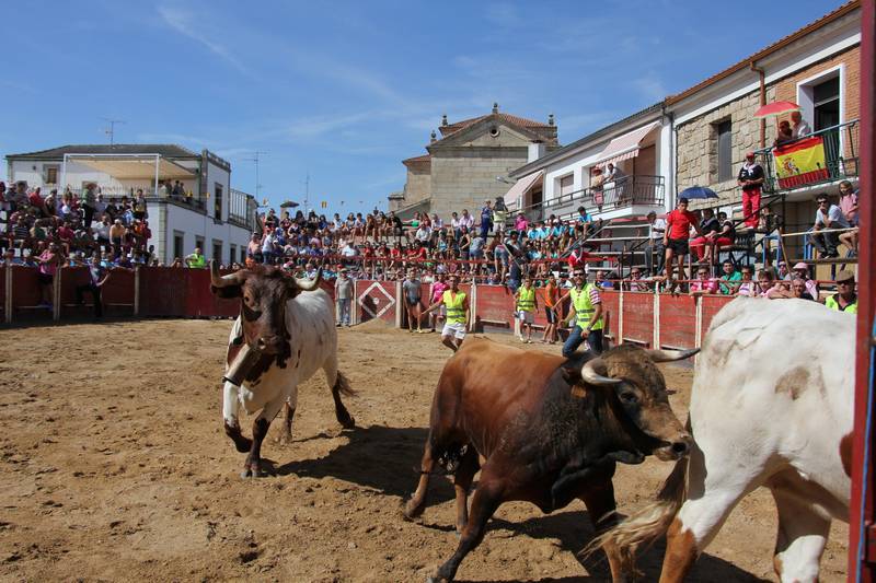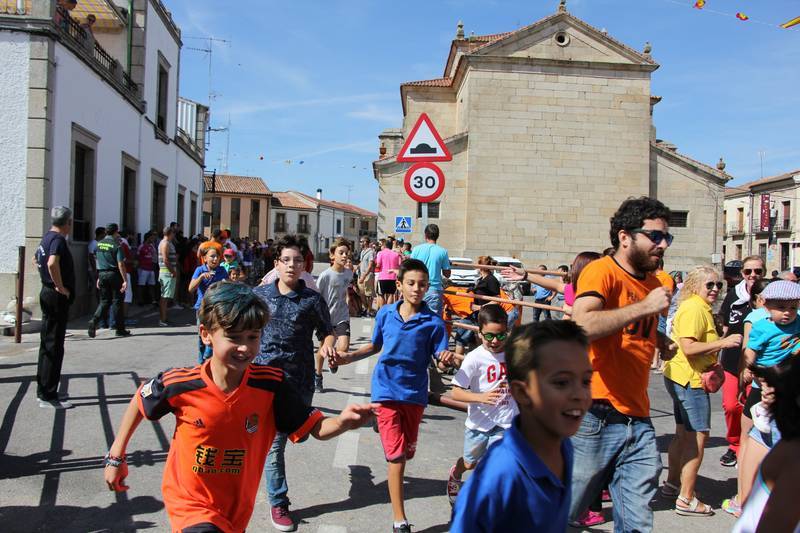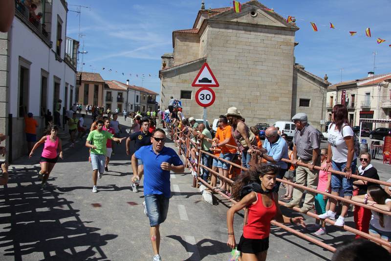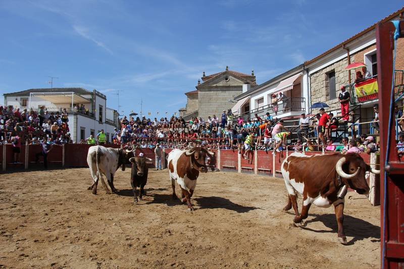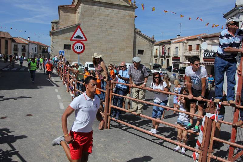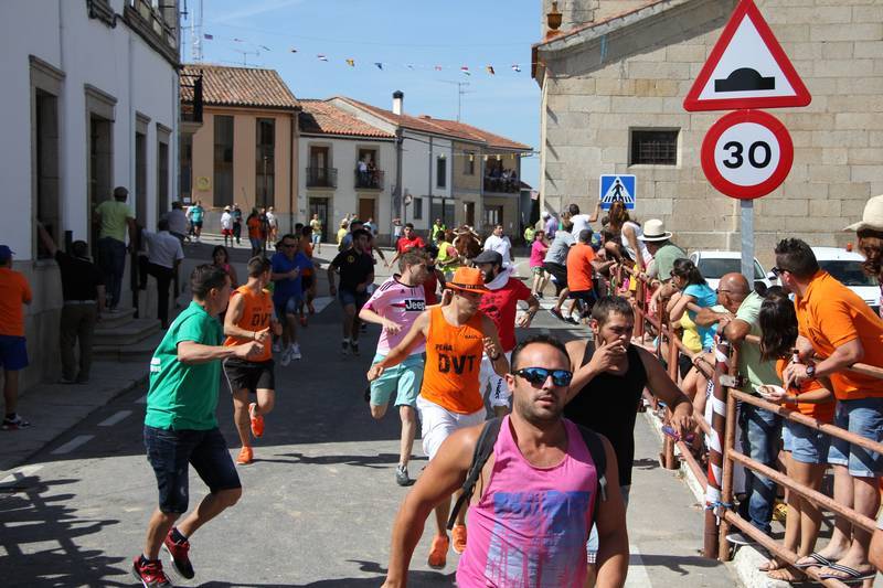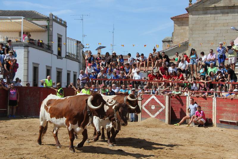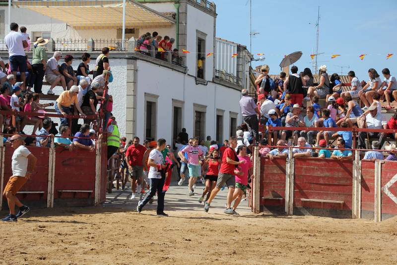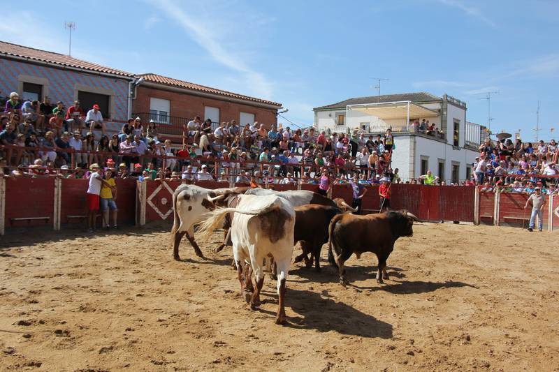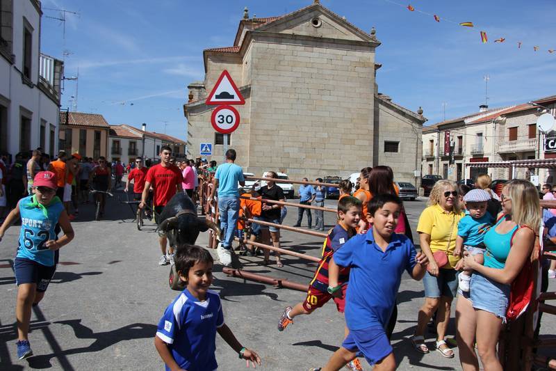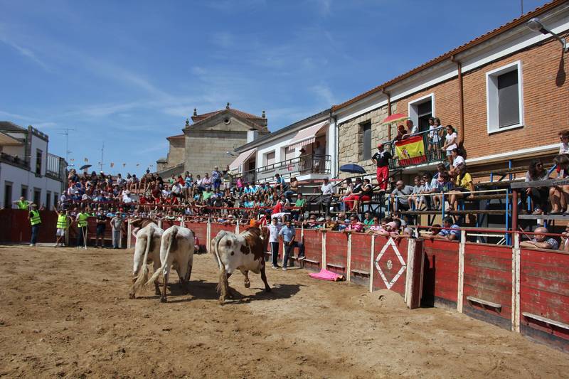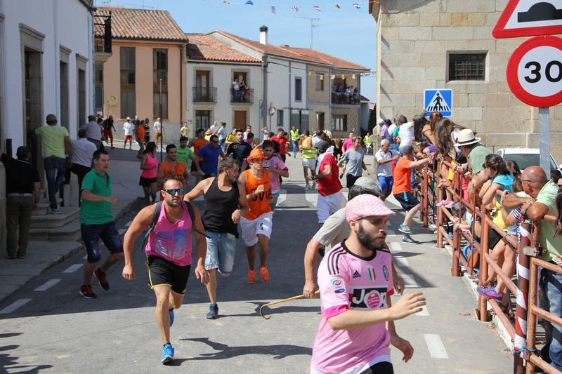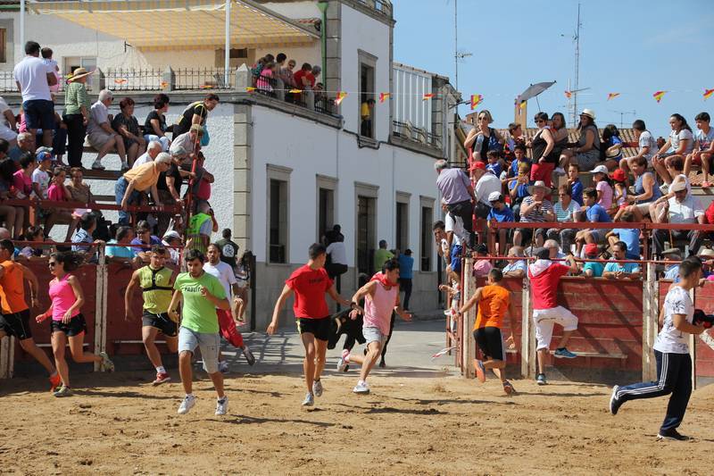 En primer lugar se corrieron dos erales de la ganadería de Rollanejo, de El Cubo de Don Sancho, bien presentados y colorados de capa, que no dieron problema alguno ni en el recorrido ni para entrar a chiqueros, a lo que contribuyeron los bueyes de hermanos Sánchez, que obligan a los aficionados a estar más pendientes de su presencia que de los novillos. En segundo lugar se corrieron dos vacas en un segundo encierro sin problemas.
