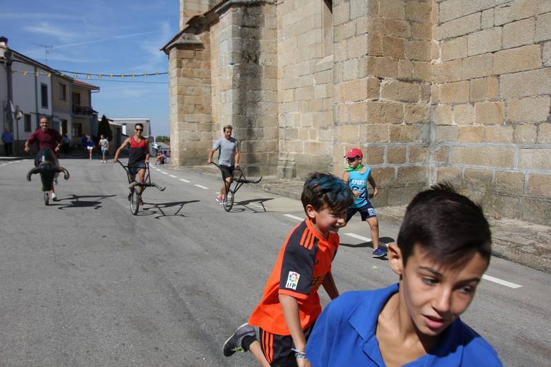 Después de una noche muy larga con las peñas como protagonistas, este sábado llegaba a Barruecopardo el primer encierro de las fiestas. Pero antes de este tendría lugar un encierro de carretones para disfrute de los más pequeños. Concluido el encierro infantil llegaría el encierro de verdad.