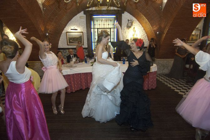 Los Hoteles Conde Rodrigo, un lugar extraordinario para este tipo de celebraciones, fue el acertado lugar elegido para continuar la fiesta donde los amigos fueron los encargados de animar el banquete donde no faltaron los bailes de sevillanas, las bromas-regalo y un gran ambiente festivo en el que se palpaba el cariño y la cercanía entre todos los asistentes a la boda.