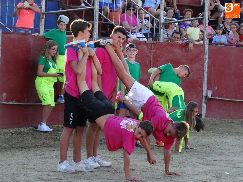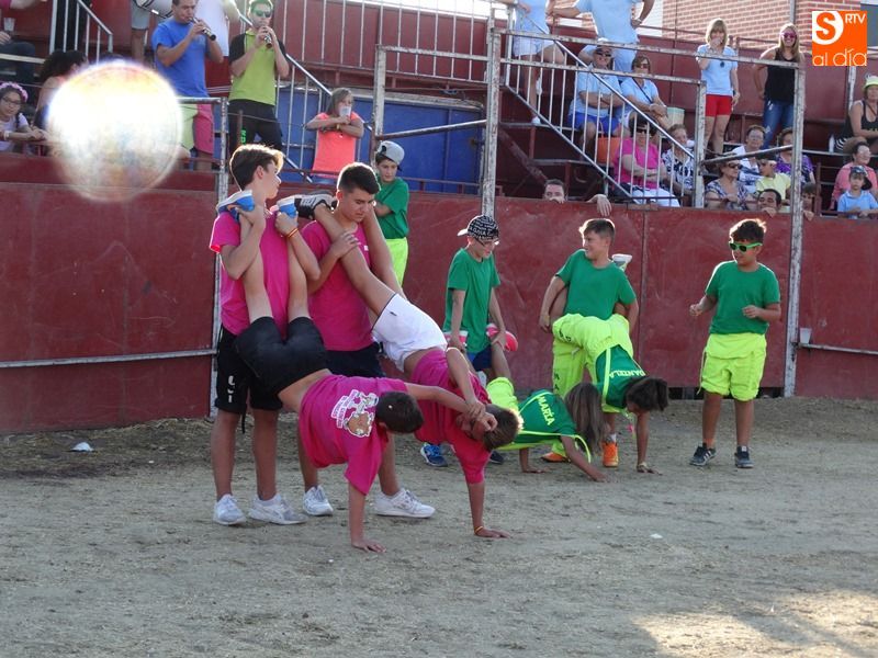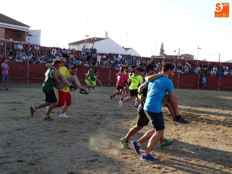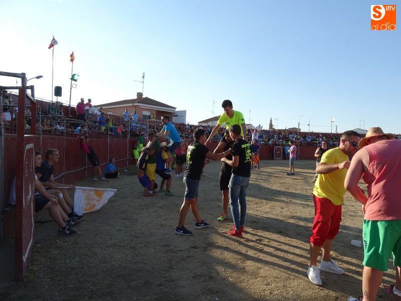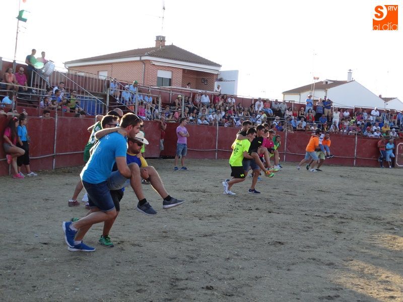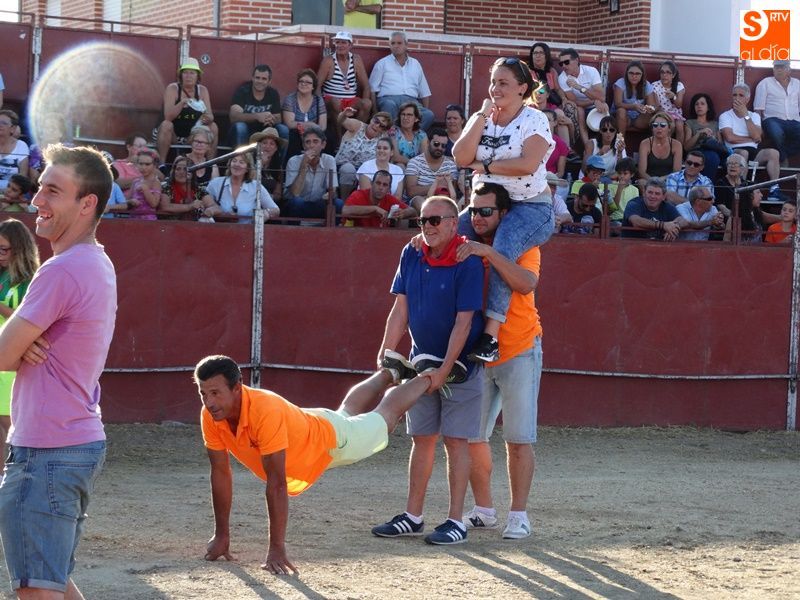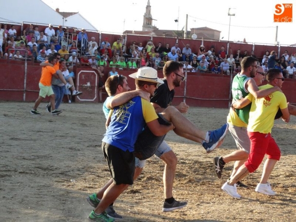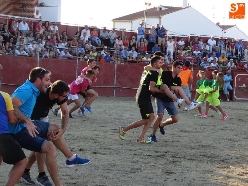 Los vecinos de Cantalapiedra han despedido este domingo sus fiestas, tras cinco intensos días repletos de actividades. La capea popular y la yincana han sido dos de las últimas propuestas del programa, que finalizó ya por la noche con el chocolate preparado por la peña La Deseada y la retirada de estandartes del balcón. En la yincana, las peñas se han puesto a prueba en varios juegos para ver quiénes eran los más habiles y rápidos, como construir figuras subiéndose unos encima de otros o haciendo carreras llevando a sus compañeros a la sillita de la reina.