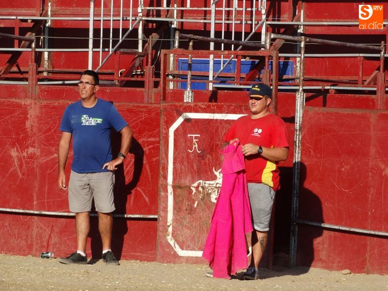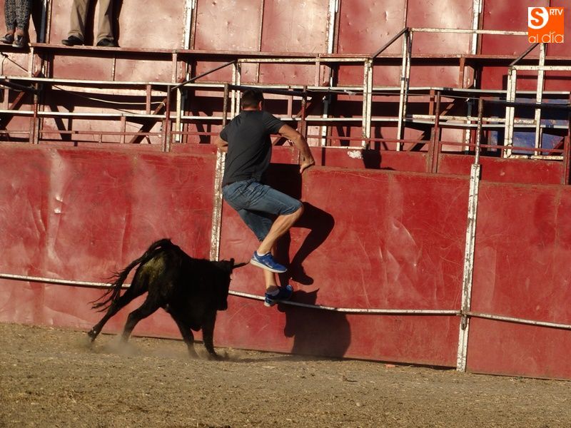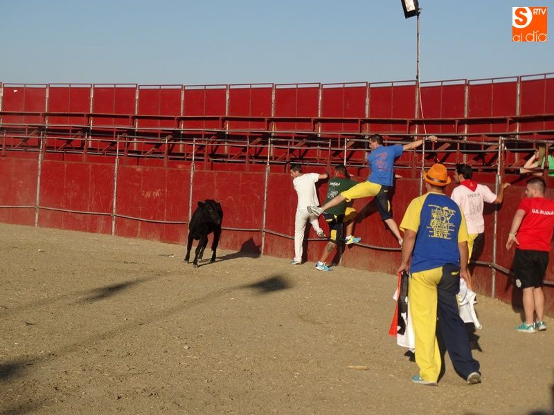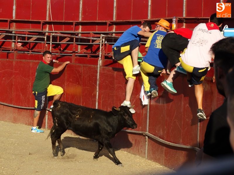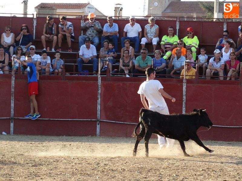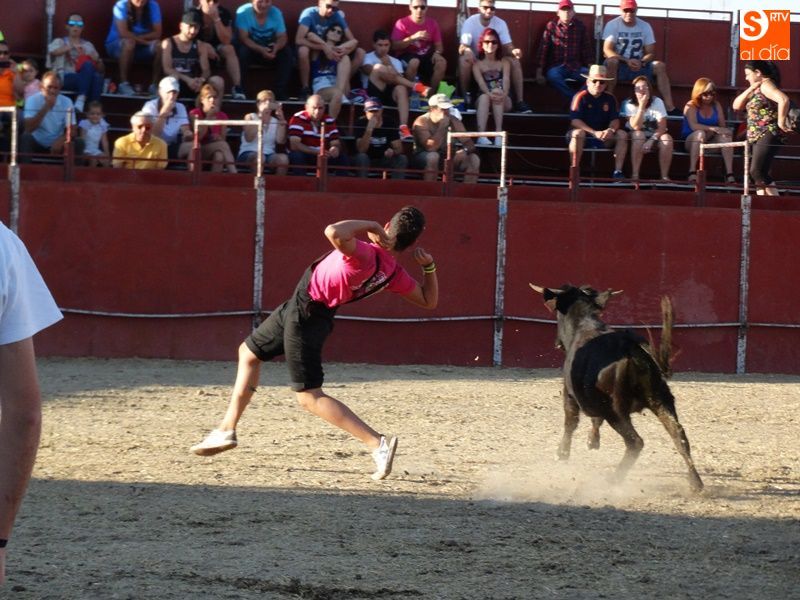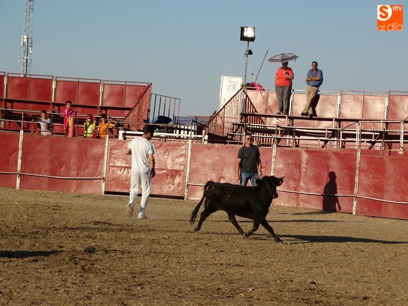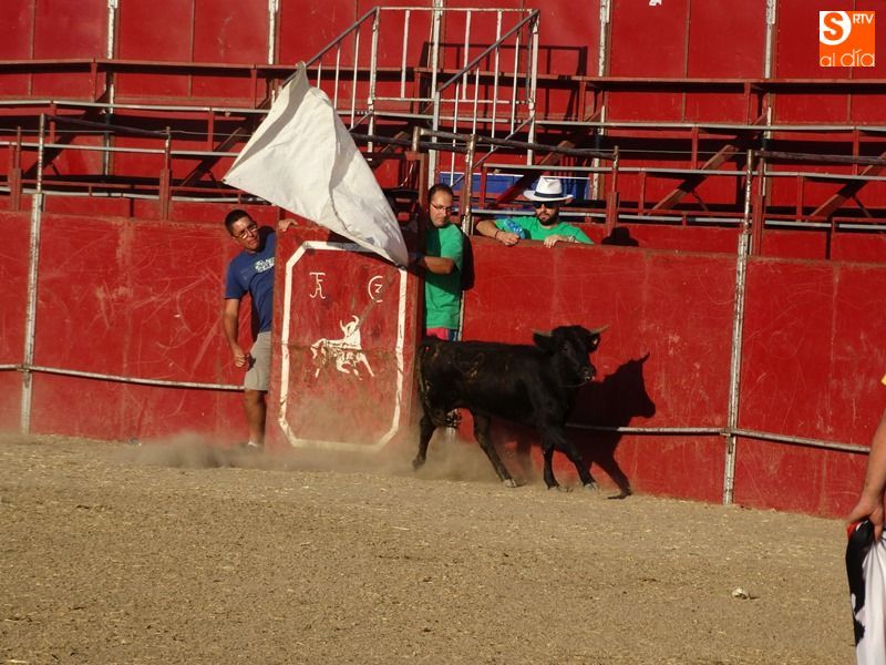Los vecinos de Cantalapiedra han despedido este domingo sus fiestas, tras cinco intensos días repletos de actividades. La capea popular y la yincana han sido dos de las últimas propuestas del programa, que finalizó ya por la noche con el chocolate preparado por la peña La Deseada y la retirada de estandartes del balcón. En la yincana, las peñas se han puesto a prueba en varios juegos para ver quiénes eran los más habiles y rápidos, como construir figuras subiéndose unos encima de otros o haciendo carreras llevando a sus compañeros a la sillita de la reina.