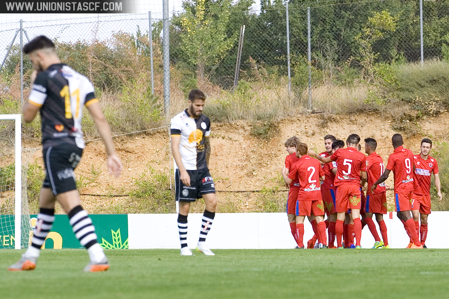 El partido, sin embargo, era trabado y sin apenas llegadas a puerta. Unionistas estaba atento a todas las aproximaciones de su rival, pero en una indecisión defensiva de los salmantinos Binke adelantó a los locales en el marcador en el minuto 34 de partido. El choque se ponía cuesta arriba para los charros.