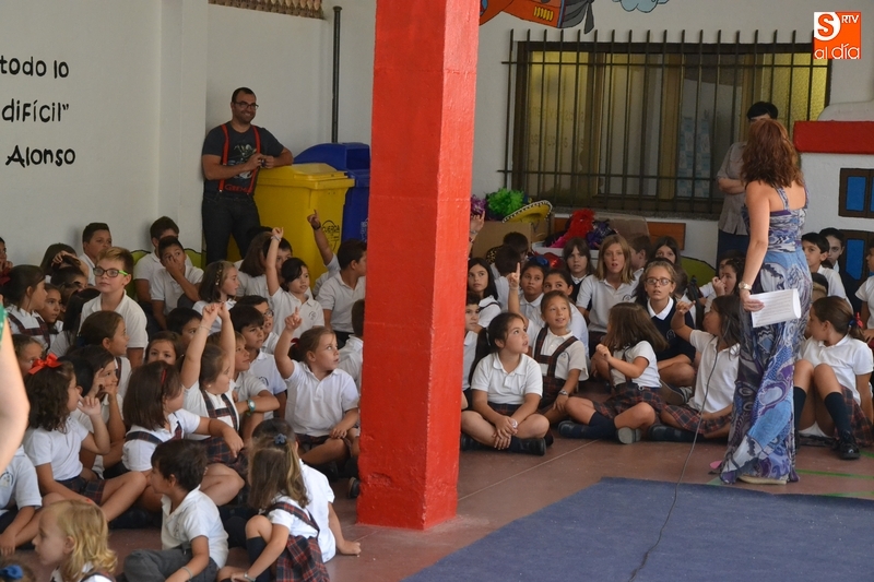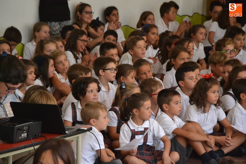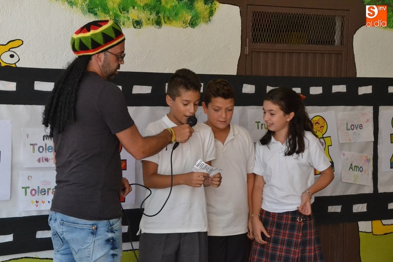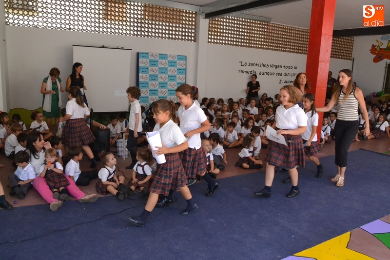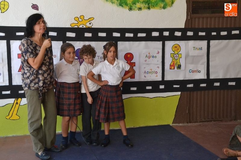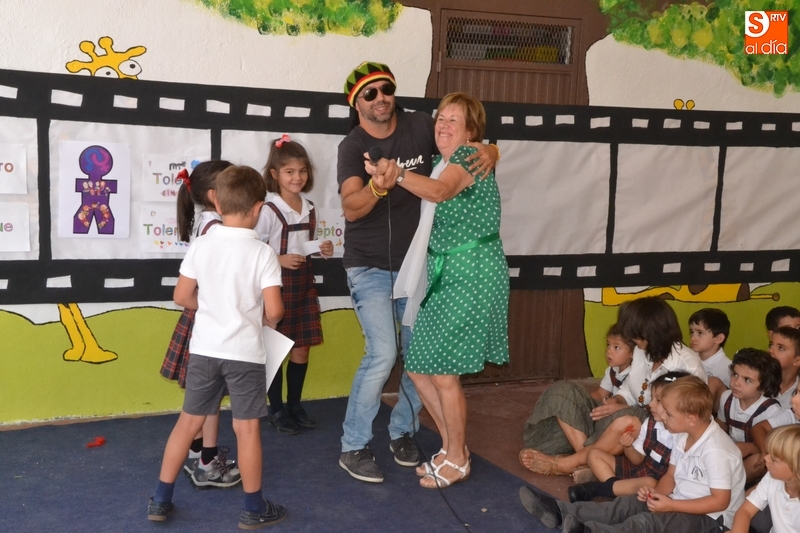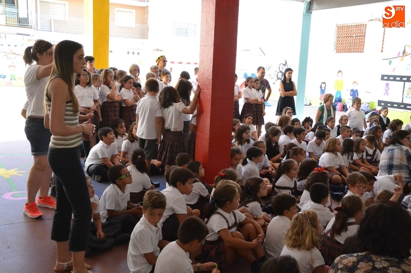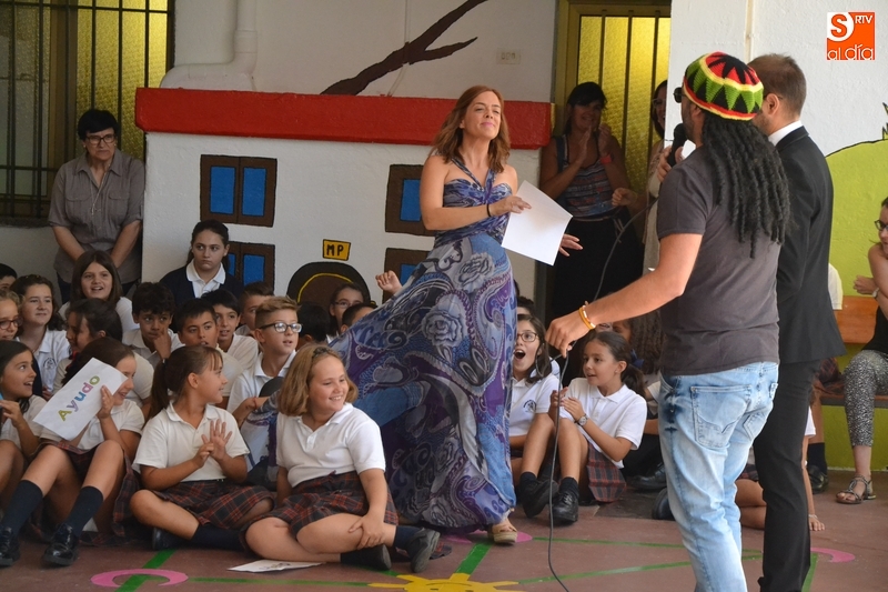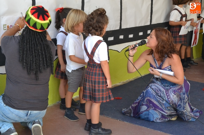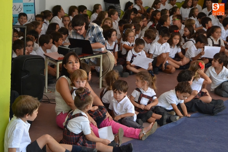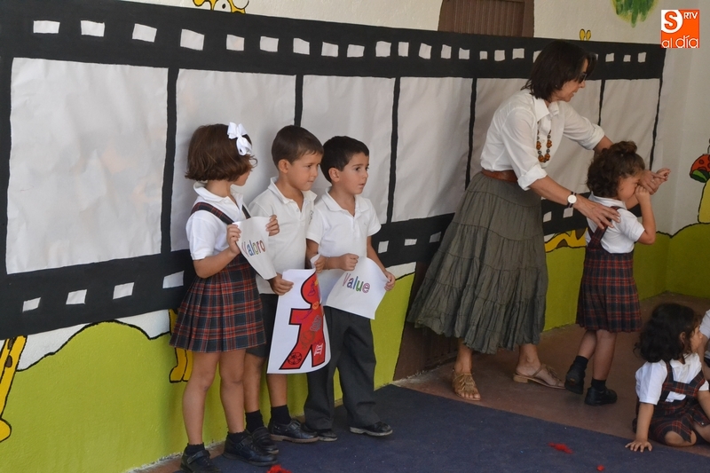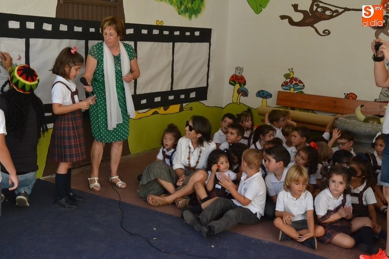 Hasta allí se acercaron los alumnos de 5º y 6º (que asisten a clase en el edificio de la calle Velayos), donde se unieron al resto de alumnos de Primaria y a los de Infantil para desarrollar junto a todo el cuerpo de profesores un curioso acto, que contó incluso con un director de cine y una actriz principal.