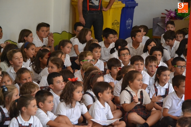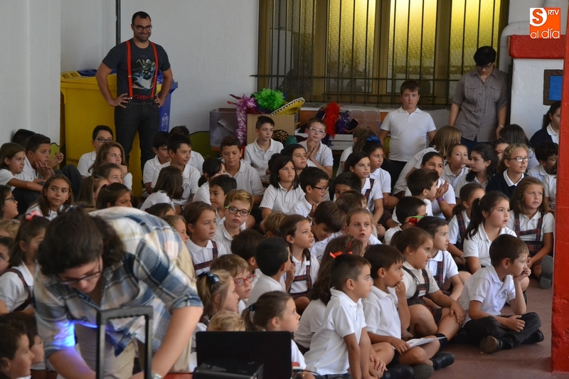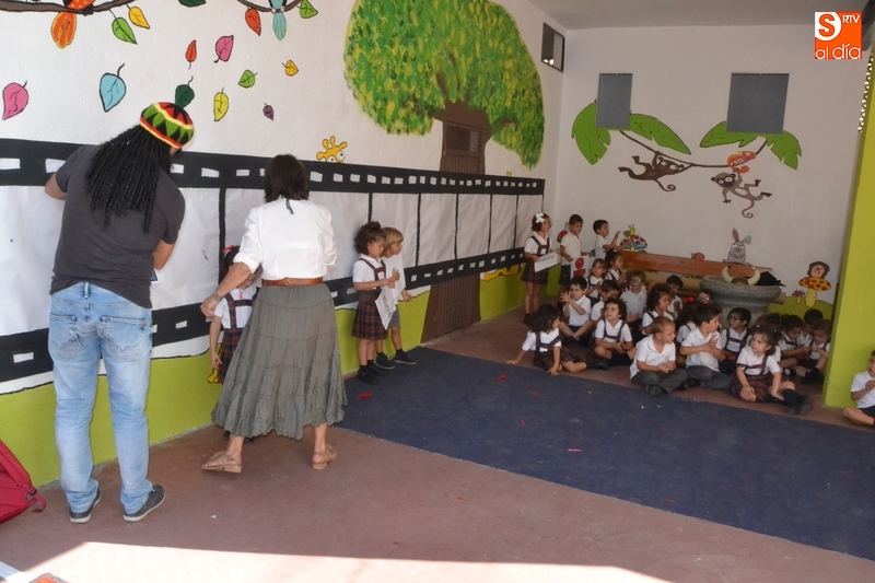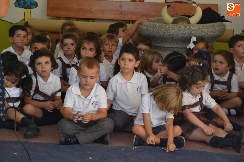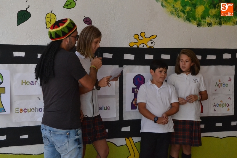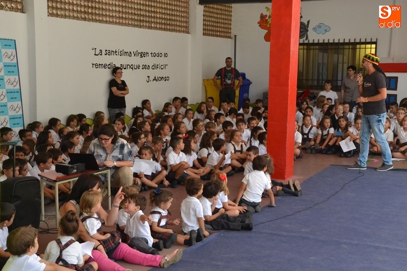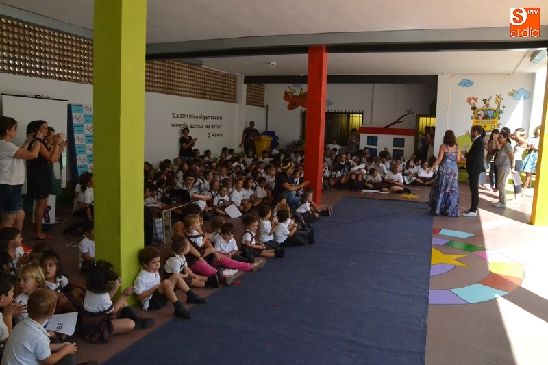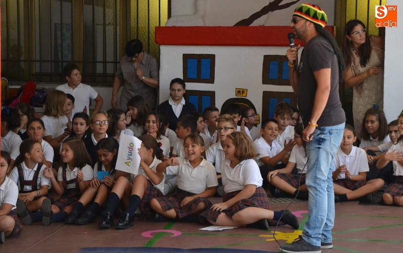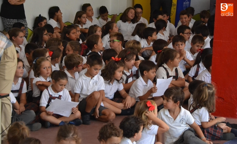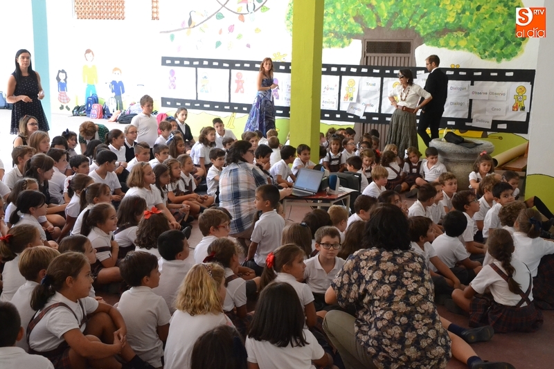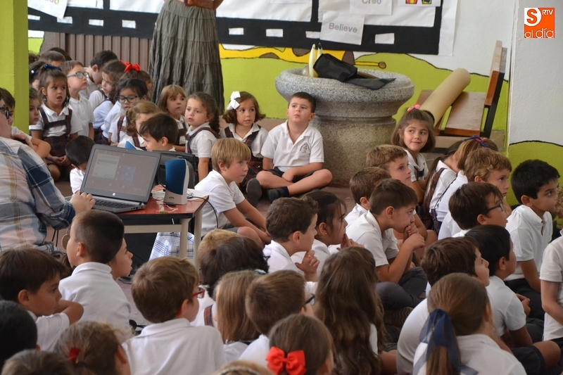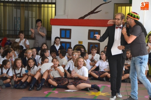 Hasta allí se acercaron los alumnos de 5º y 6º (que asisten a clase en el edificio de la calle Velayos), donde se unieron al resto de alumnos de Primaria y a los de Infantil para desarrollar junto a todo el cuerpo de profesores un curioso acto, que contó incluso con un director de cine y una actriz principal.