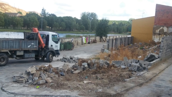 En la mañana del martes comenzó la operación de derribo del muro que delimitaba hasta ahora un solar situado justo a la entrada del barrio de El Puente de Ciudad Rodrigo que era usado como basurero 'improvisado' por los vecinos, que tiraban allí sus bolsas de basura (las lanzaban por encima del muro) en vez de llevarlas hasta un contenedor.