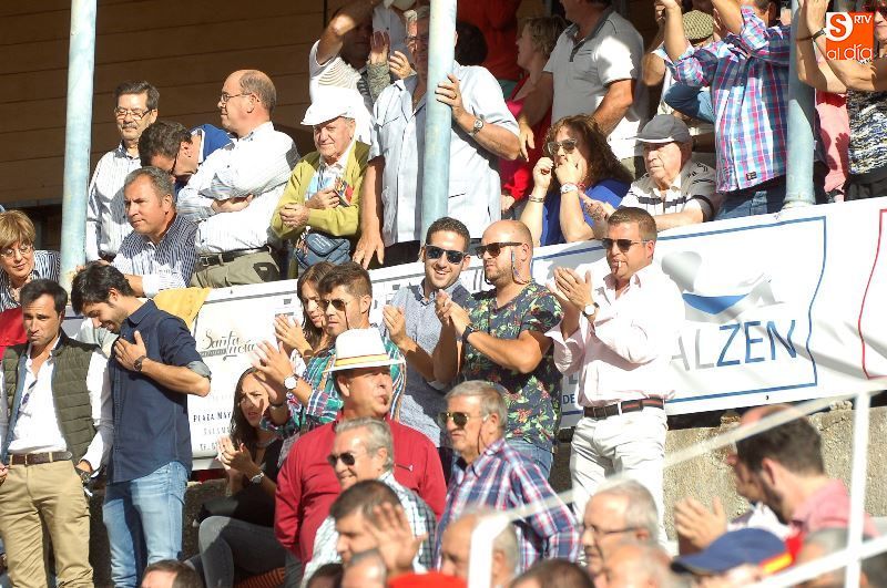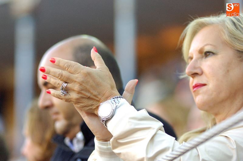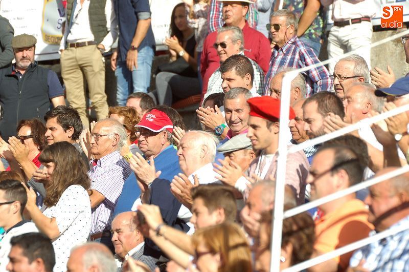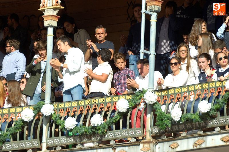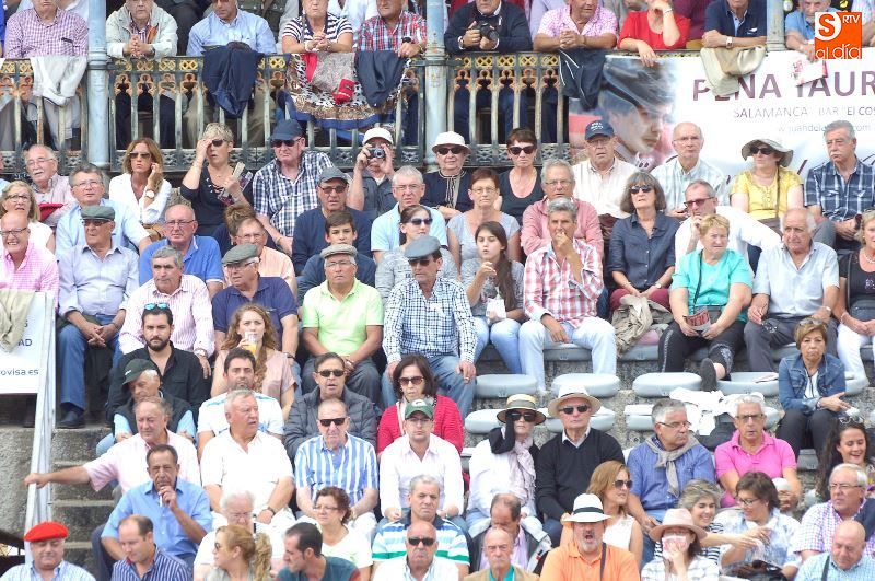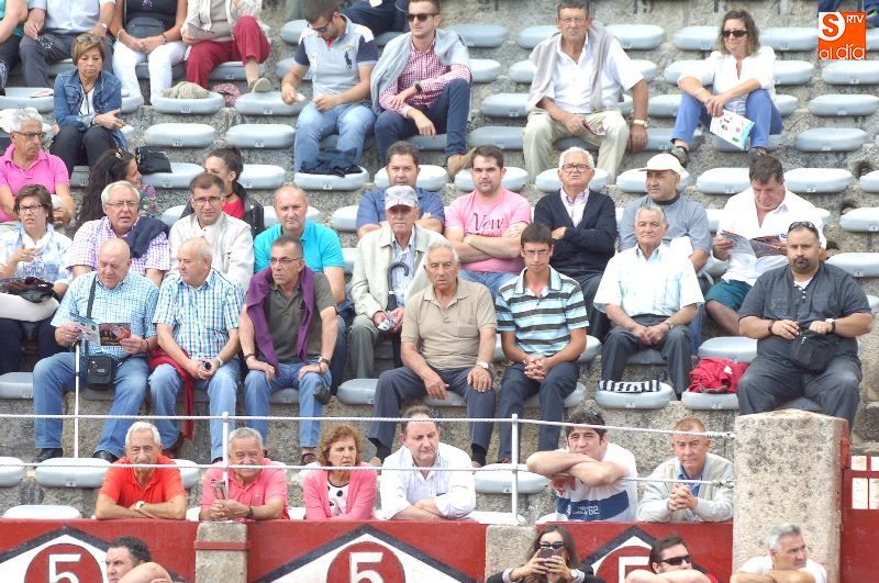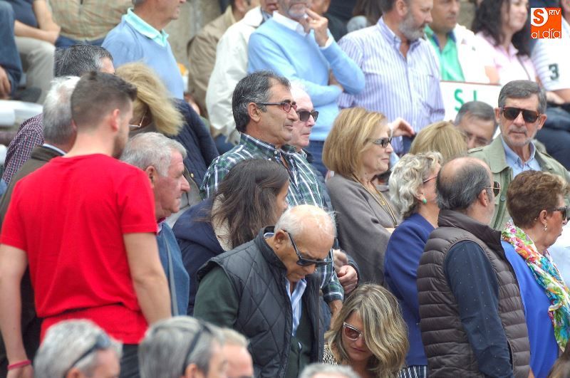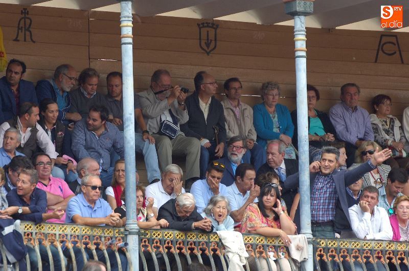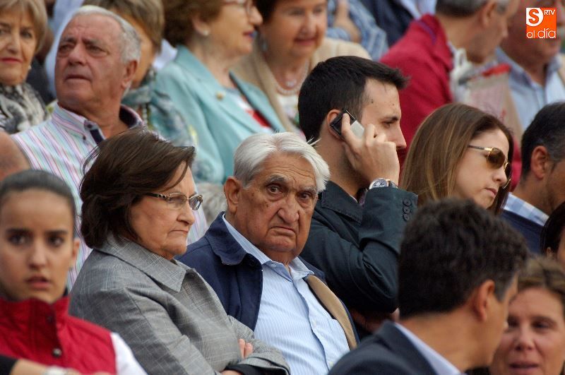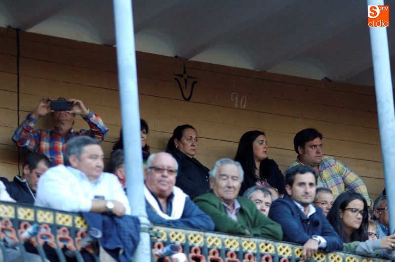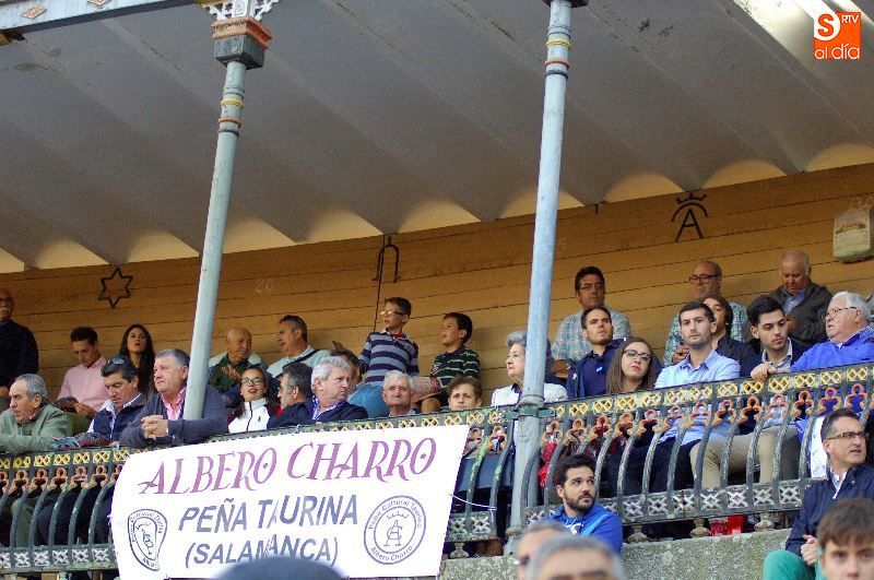 Una tarde más, no faltaron en La Glorieta los ganaderos del Campo Charro, con la figura de Alipio Pérez-Tabernero muy presente y al que se le recordó con un minuto de silencio al inicio del festejo. Alejandro Marcos, que ayer salió en hombros de su plaza de Salamanca, volvió hoy para ocupar un lugar en el callejón, y en los tendidos se encontraban Juan del Álamo o Salvador Ruano.