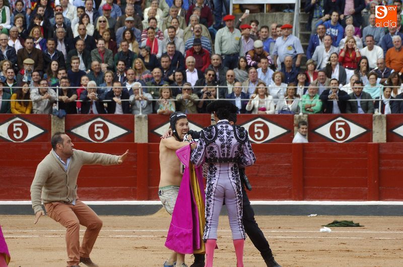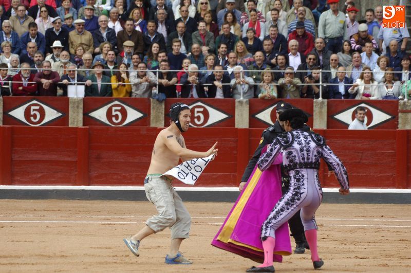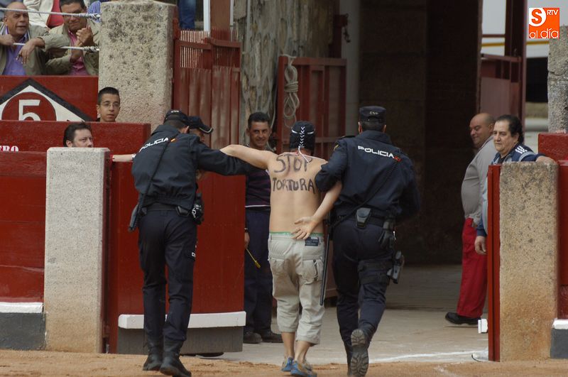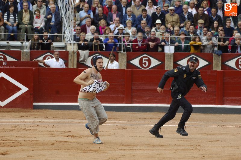 Al ruedo saltó un antitaurino que de forma inmediata fue retenido y sacado de la plaza por agentes de la Policía Nacional.