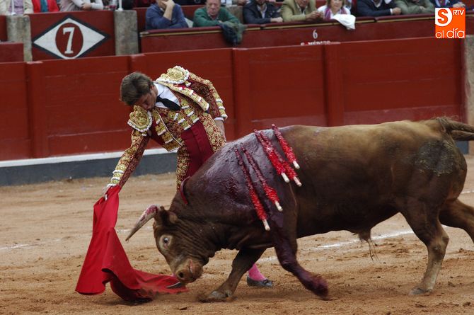 Muy templado toreó del Álamo a la verónica y dos medias finales selló para rematar el quite de nota. Lo recibió con la muleta en los medios muy firme el salmantino, alargando el compás y arrancar por el pitón derecho series largas encajado. Verdad en los toques y cabeza para ejecutar. Humilló con clase 'Heredero'. Bernardinas finales y estocada entera, trasera. Aplaudido el toro en el arrastre.