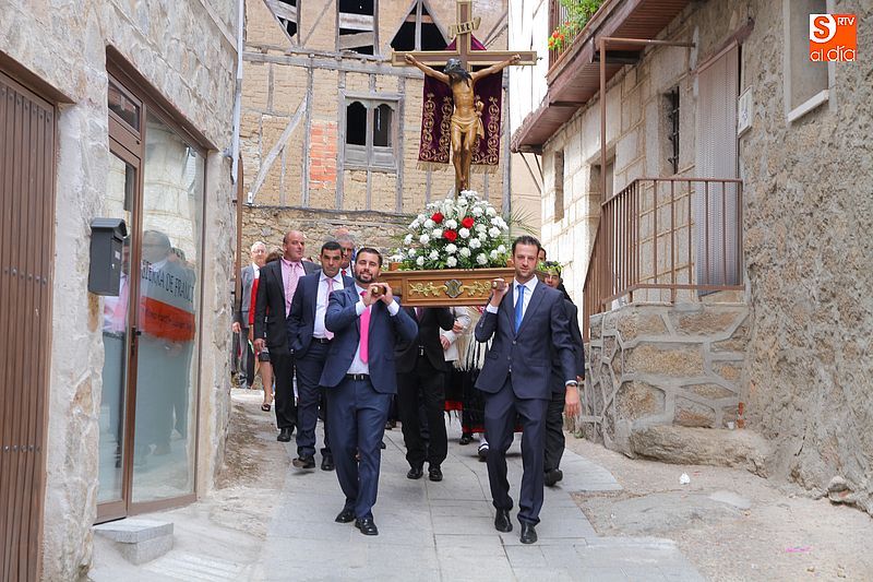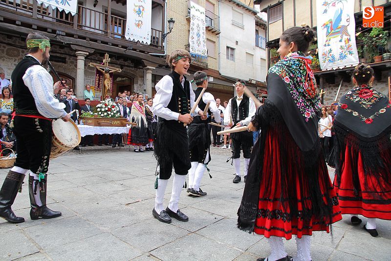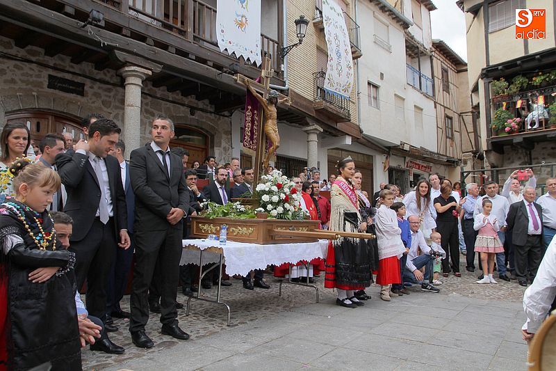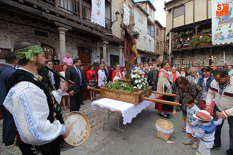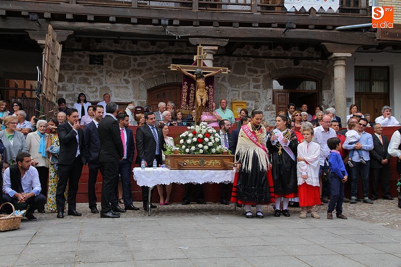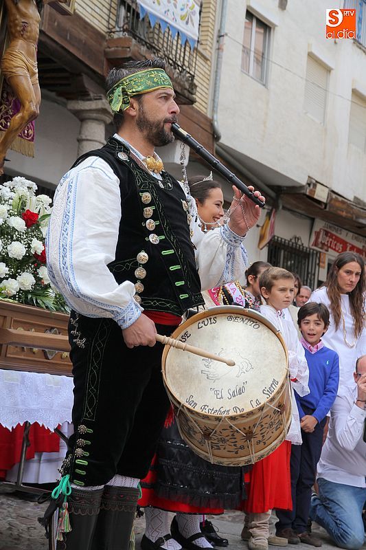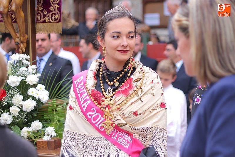 Con devoción y sentimiento vivieron los vecinos de San Esteban los actos de homenaje al Cristo en el día grande de los festejos. Tras una intensa noche de vísperas, que finalizó a altas horas de la madrugada, los actos comenzaron a primera hora, con la celebración de la alborada. La charanga Los del Barrio recorrió las calles despertando a los vecinos, pocas horas antes del inicio de los actos de homenaje al Cristo. A las 12:30 horas comenzó la misa solemne, con la música del tamborilero local José Luis Benito 'El Salao', quien marcaría el compás durante toda la mañana. Una vez finalizado el oficio, los miembros de la peña del Cristo llevaron a hombros la imagen, abriendo la procesión que recorrió varias calles hasta llegar a la plaza Mayor, donde se celebró el ofertorio. Decenas de vecinos hicieron su ofrenda al Cristo antes de que el grupo folclórico ofreciera sus tradicionales bailes. El público aplaudió el empeño de los jóvenes en el trenzado, y especialmente en el paleo serrano. Tras devolver la imagen a la iglesia, se ofreció un convite a base de sangría y dulces típicos a cargo del Ayuntamiento.