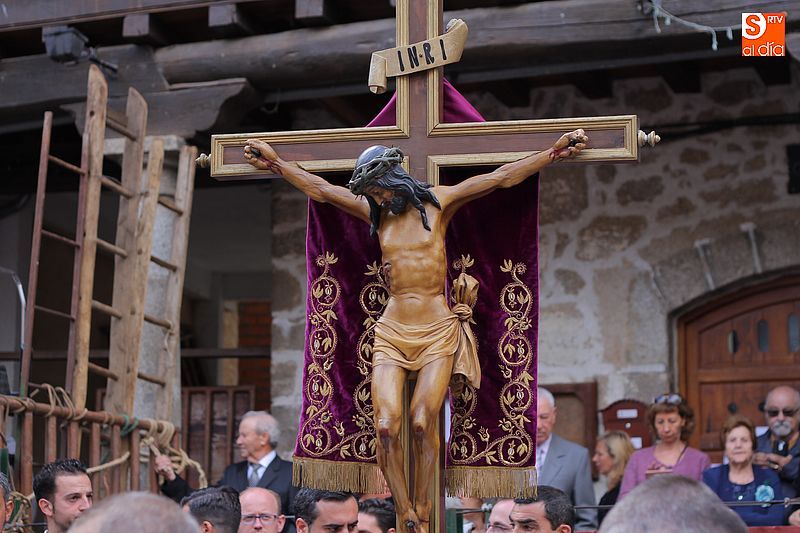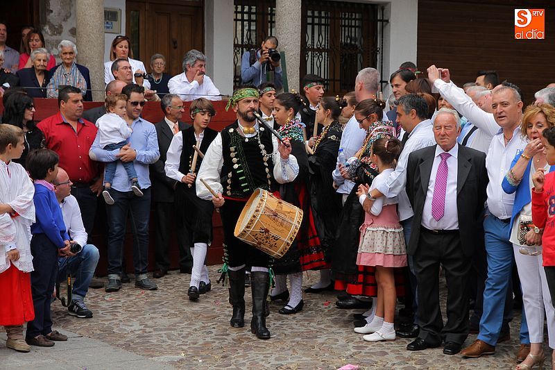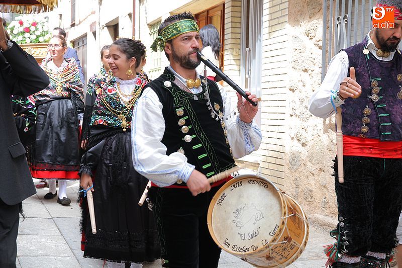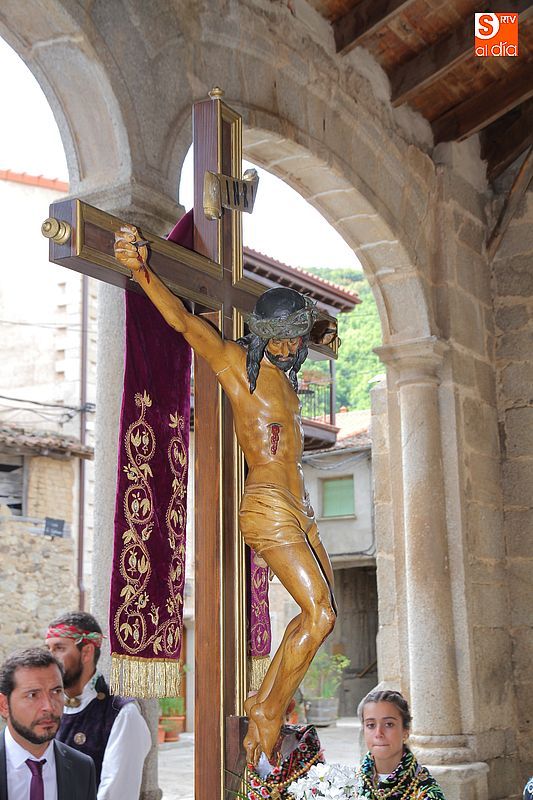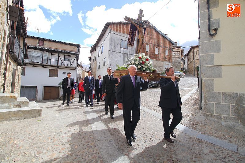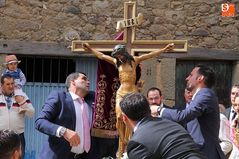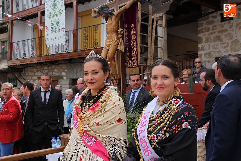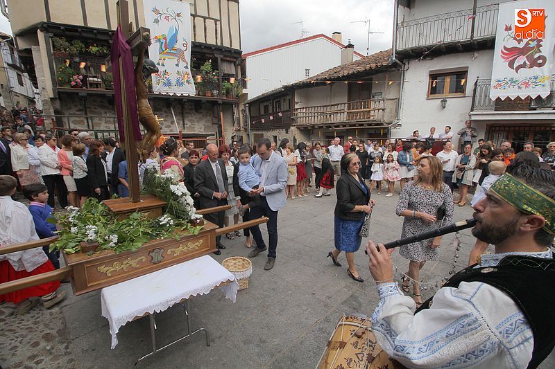 Con devoción y sentimiento vivieron los vecinos de San Esteban los actos de homenaje al Cristo en el día grande de los festejos. Tras una intensa noche de vísperas, que finalizó a altas horas de la madrugada, los actos comenzaron a primera hora, con la celebración de la alborada. La charanga Los del Barrio recorrió las calles despertando a los vecinos, pocas horas antes del inicio de los actos de homenaje al Cristo. A las 12:30 horas comenzó la misa solemne, con la música del tamborilero local José Luis Benito 'El Salao', quien marcaría el compás durante toda la mañana. Una vez finalizado el oficio, los miembros de la peña del Cristo llevaron a hombros la imagen, abriendo la procesión que recorrió varias calles hasta llegar a la plaza Mayor, donde se celebró el ofertorio. Decenas de vecinos hicieron su ofrenda al Cristo antes de que el grupo folclórico ofreciera sus tradicionales bailes. El público aplaudió el empeño de los jóvenes en el trenzado, y especialmente en el paleo serrano. Tras devolver la imagen a la iglesia, se ofreció un convite a base de sangría y dulces típicos a cargo del Ayuntamiento.