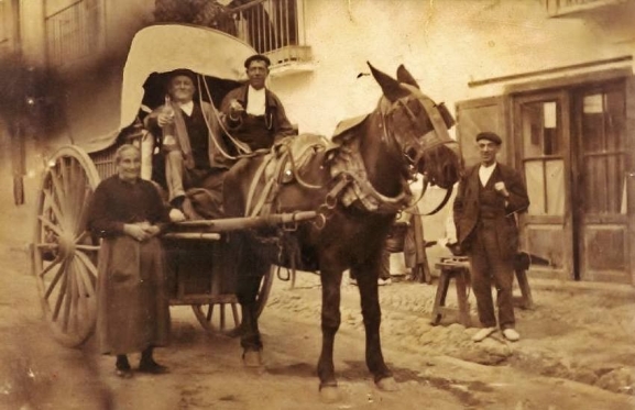 Se allegaba por el horizonte con su mercancía, como recuerdo de mi infancia llegaban a las plazas del pueblo los ambulantes con sus caballerías. Y en sus banastos traían las primeras uvas, algún higo, otras cosas que vender al sedentario habitante.