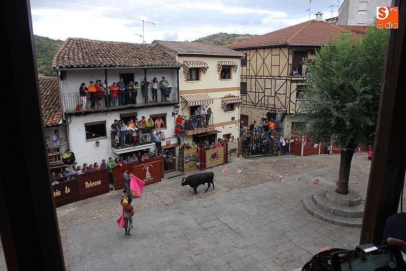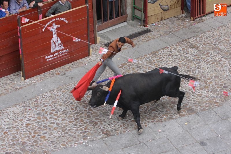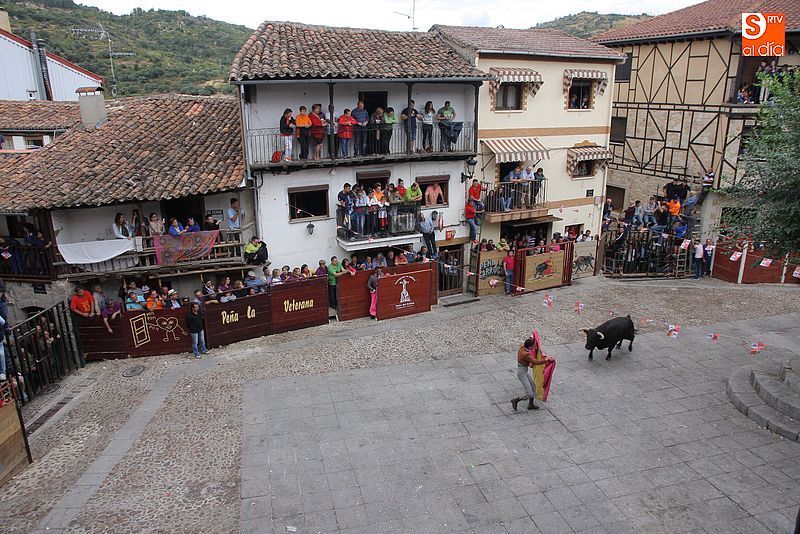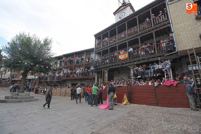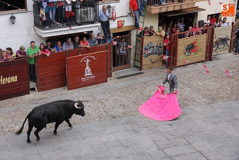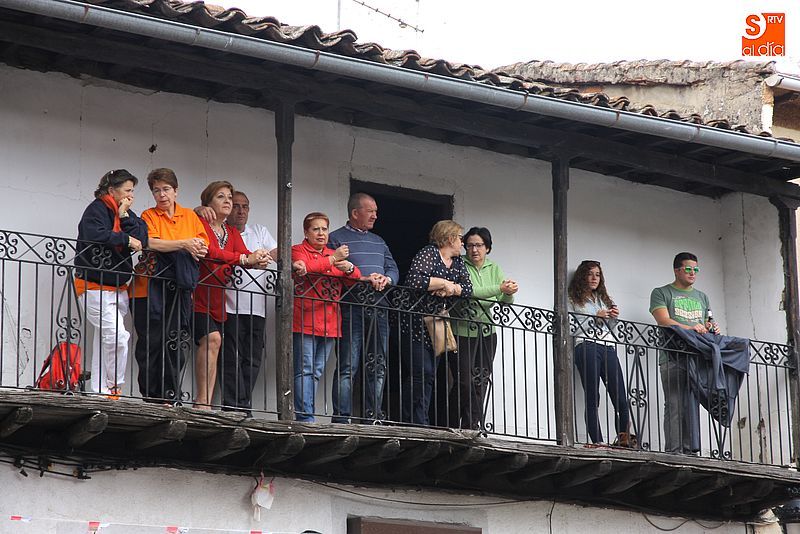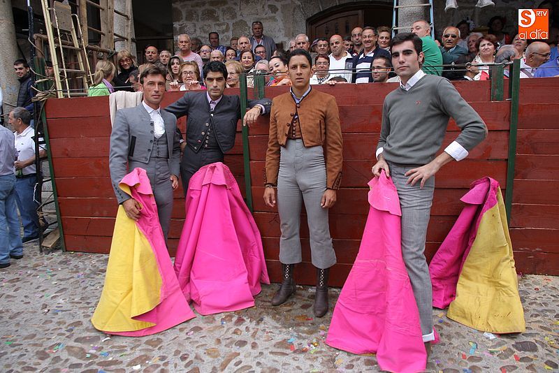 La plaza Mayor de San Esteban de la Sierra se convirtió hoy en coso taurino con sus mejores galas para la celebración de la tradicional novillada con motivo de las fiestas del Cristo. En esta ocasión fue el novillero José David Cadavid el que se enfrentó a dos reses de El Puerto de San Lorenzo. Las nubes amenazaron a primera hora de la tarde, pero el tiempo respetó el festejo, que se celebró sin impedimentos. Las peñas de la localidad ocuparon sus sitios en burladeros y balcones, llenándose por completo la plaza de espectadores deseosos de ver el festejo. El novillero ofreció una buena actuación, obteniendo una oreja y los aplausos del público. Los vecinos de San Esteban se prepararon para completar la jornada con la verbena y el entierro del anisete que tendrán lugar esta noche a partir de las 23:00 horas.