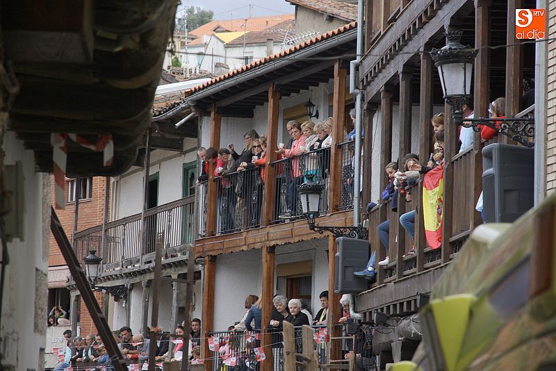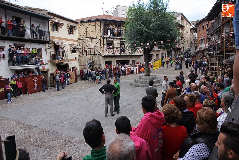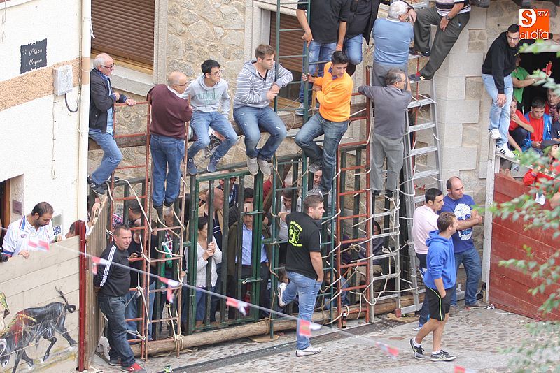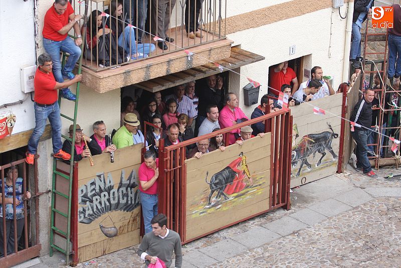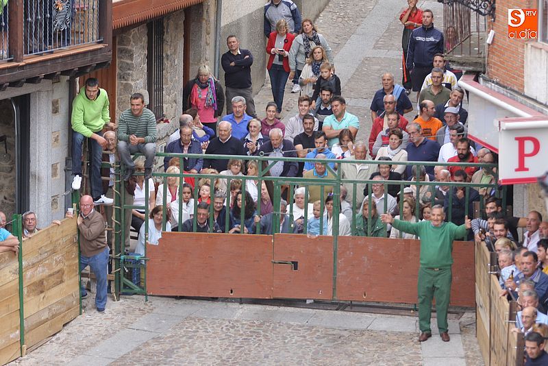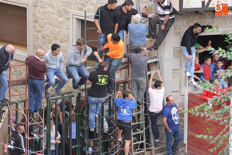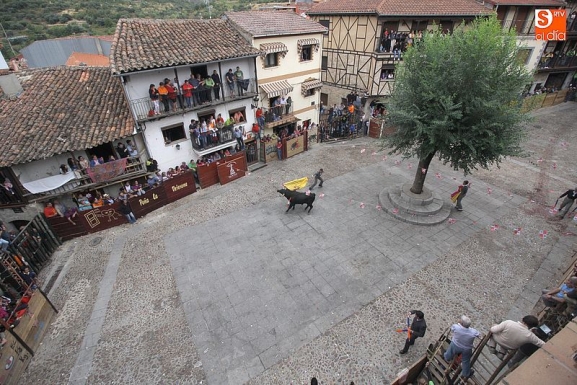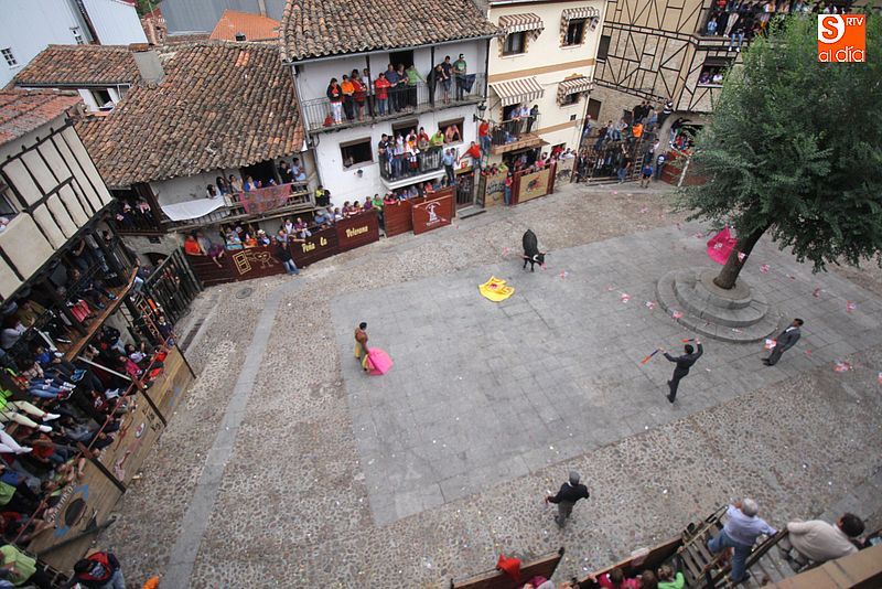 La plaza Mayor de San Esteban de la Sierra se convirtió hoy en coso taurino con sus mejores galas para la celebración de la tradicional novillada con motivo de las fiestas del Cristo. En esta ocasión fue el novillero José David Cadavid el que se enfrentó a dos reses de El Puerto de San Lorenzo. Las nubes amenazaron a primera hora de la tarde, pero el tiempo respetó el festejo, que se celebró sin impedimentos. Las peñas de la localidad ocuparon sus sitios en burladeros y balcones, llenándose por completo la plaza de espectadores deseosos de ver el festejo. El novillero ofreció una buena actuación, obteniendo una oreja y los aplausos del público. Los vecinos de San Esteban se prepararon para completar la jornada con la verbena y el entierro del anisete que tendrán lugar esta noche a partir de las 23:00 horas.