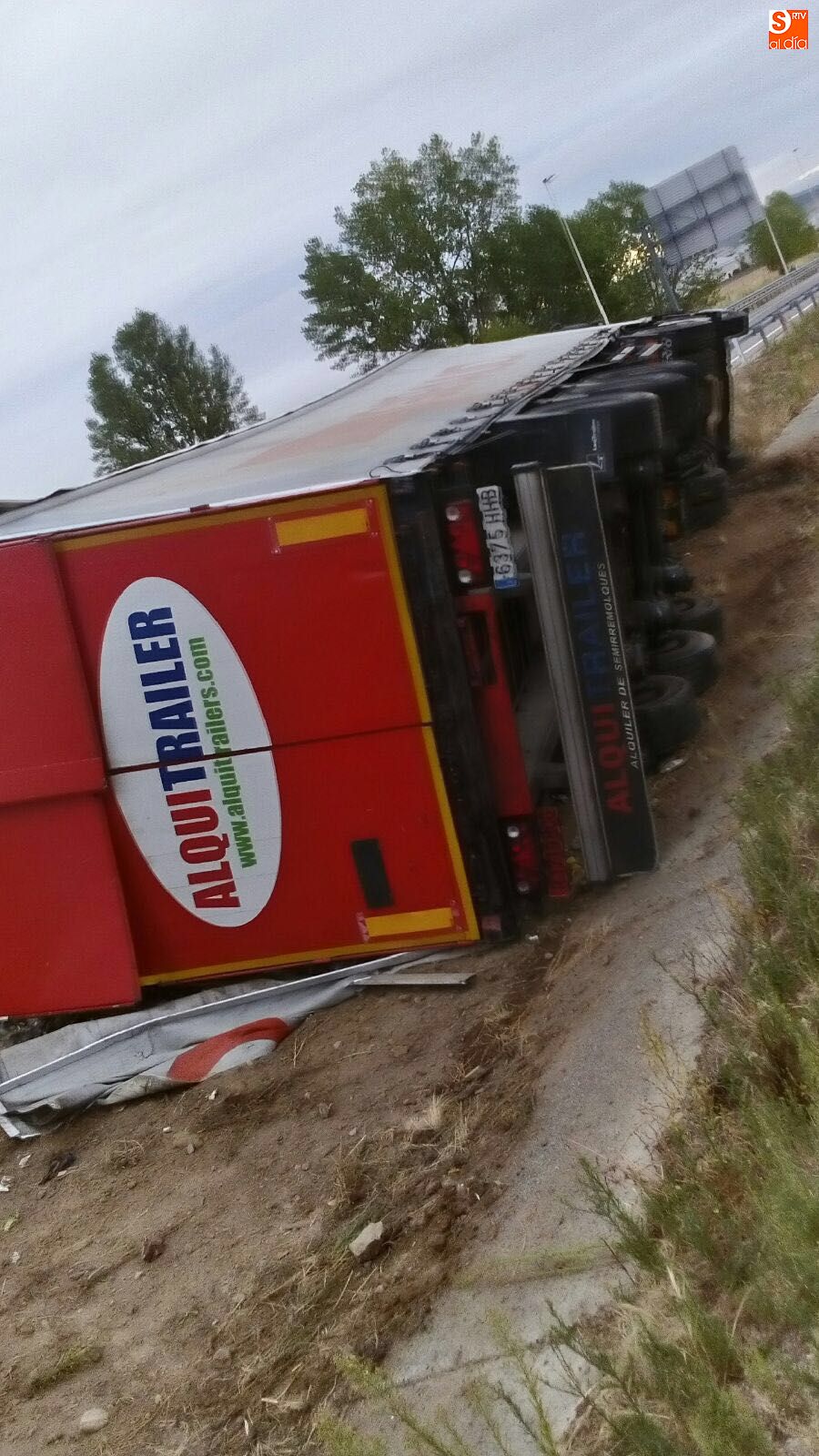 El conductor de un camión, que ha volcado sobre la mediana de la A-62, en Carpio de Azaba, ha resultado ileso. El suceso se ha producido a las 06.50 de esta mañan