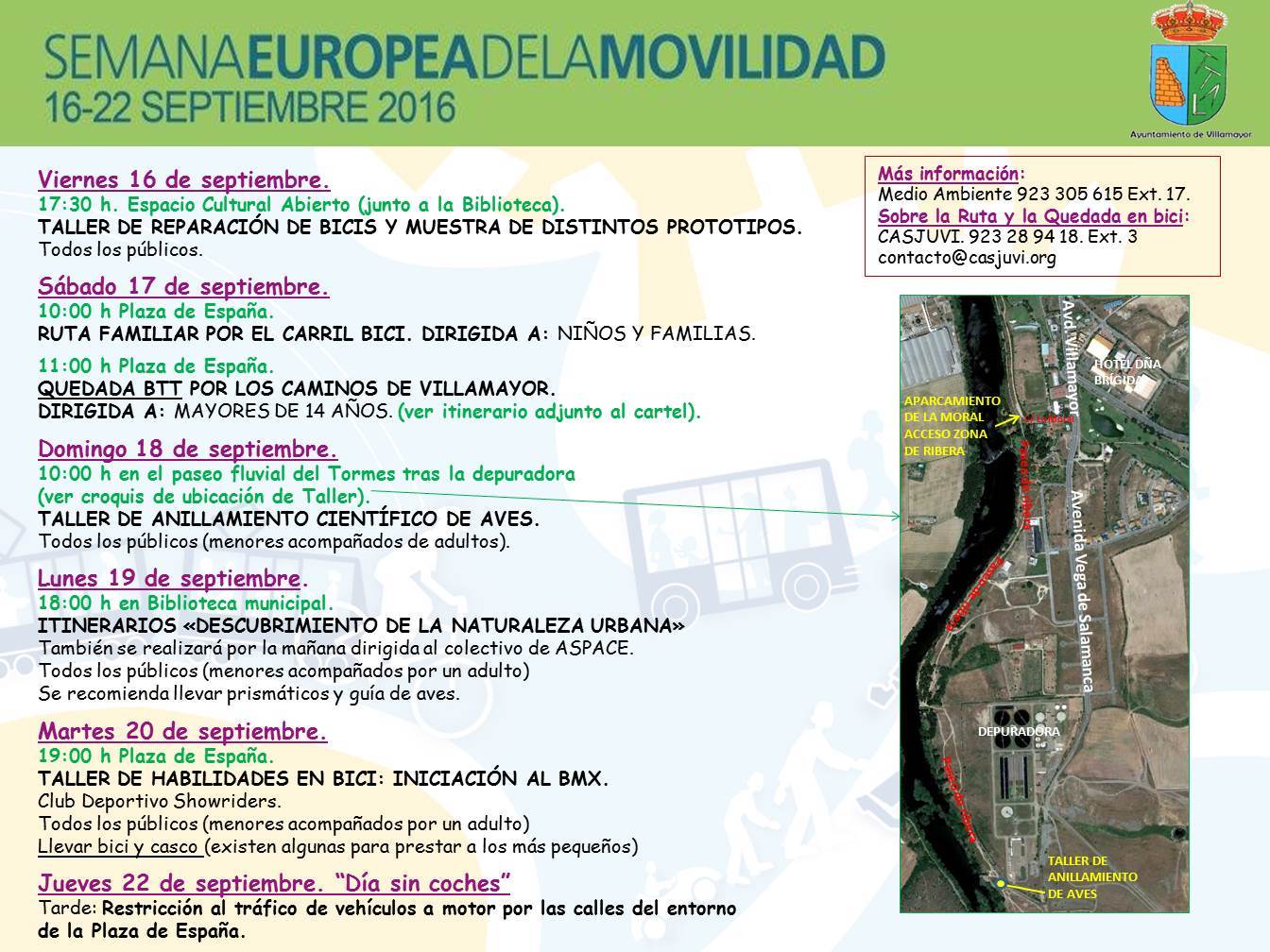 El equipo de Gobierno del Ayuntamiento de Villamayor ha presentado un amplio y variado programa de actividades para celebrar la Semana Europea de la Movilidad, programación que comienza hoy mismo y se prolongará hasta el próximo jueves 22 de septiembre.