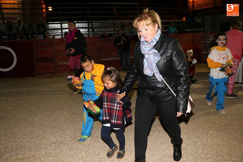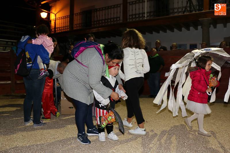 Finalizado el desfile, todos los niños recibieron una bolsa de chucherías como recompensa a su participación, mientras que en la categoría de adultos los mejores se llevarían jamones y lotes de embutido.