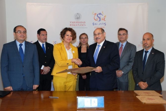 En la firma del acuerdo estuvo presente además Óscar González, director gerente de la Fundación General de la Universidad de Salamanca, que colabora en este convenio a través de los Cursos de Especialización en Derecho.
