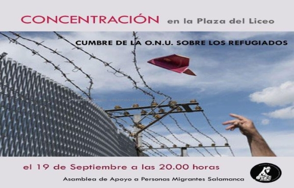 Por este motivo, la Asamblea de Apoyo a Personas Migrantes de Salamanca convoca una concentración con el lema 'En Pie por los Refugiados' para este lunes, 19 de septiembre, a las 20.00 horas en la Plaza del Liceo.