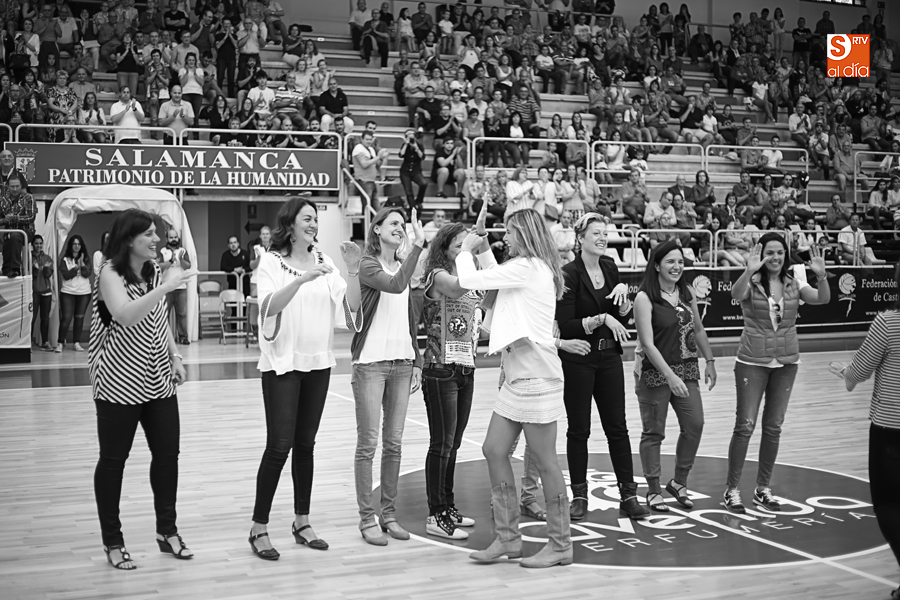 ieron presentes sobre el parqué de Würzburg para recibir el calor del público salmantino en el descanso del choque entre Perfumerías Avenida y Embutidos Pajariel Bembibre, a la vez que el club les hizo entrega de un pequeño obsequio de recuerdo de esta fecha. Olga Moraga, Susana Iglesias, Sonia Serrano, Chabeli Delgado, Susana Moro, Pilar Delgado, Adela Parrés, Rocío Gutiérrez y Belén Herrero (Amaya Valdemoro, Raquel Ros, Teresa Martín y Esther Conde no han podido acudir).