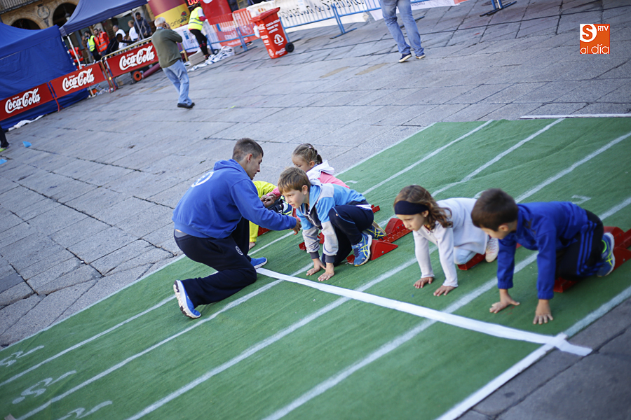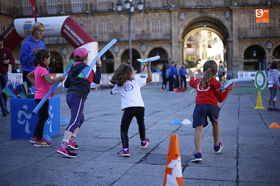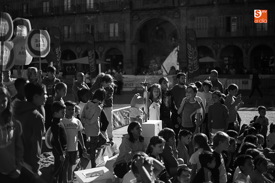Paralelamente, la Plaza Mayor de Salamanca acoge actividades deportivas, como "Atletismo Divertido", con un desfile con la antorcha olímpica incluida, exhibición de zumba o animación.
