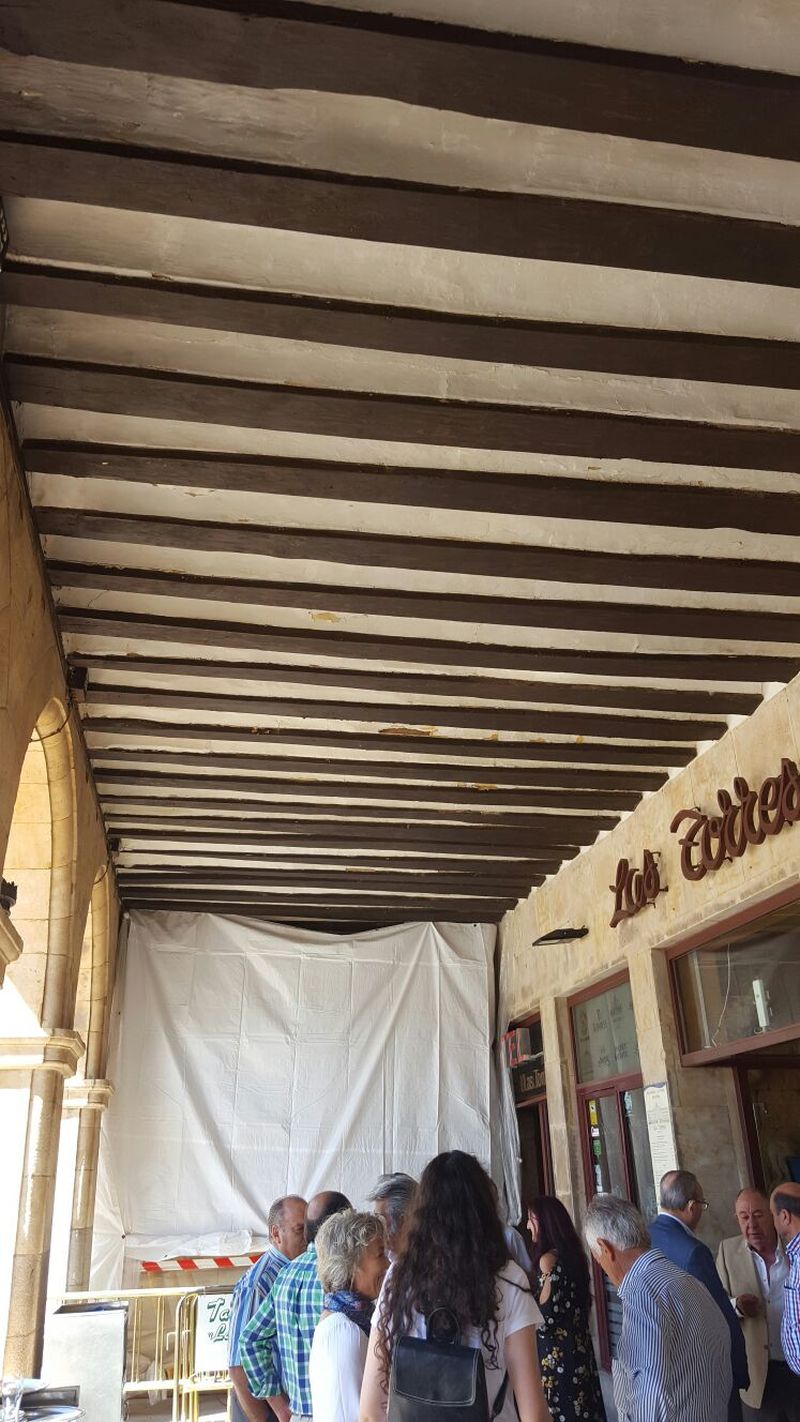 Pese a tratarse de una rotura muy localizada, el Consistorio anunció recientemente que realizará un estudio para analizar las condiciones en que se encuentran la totalidad de las vigas de los soportales de la Plaza Mayor.